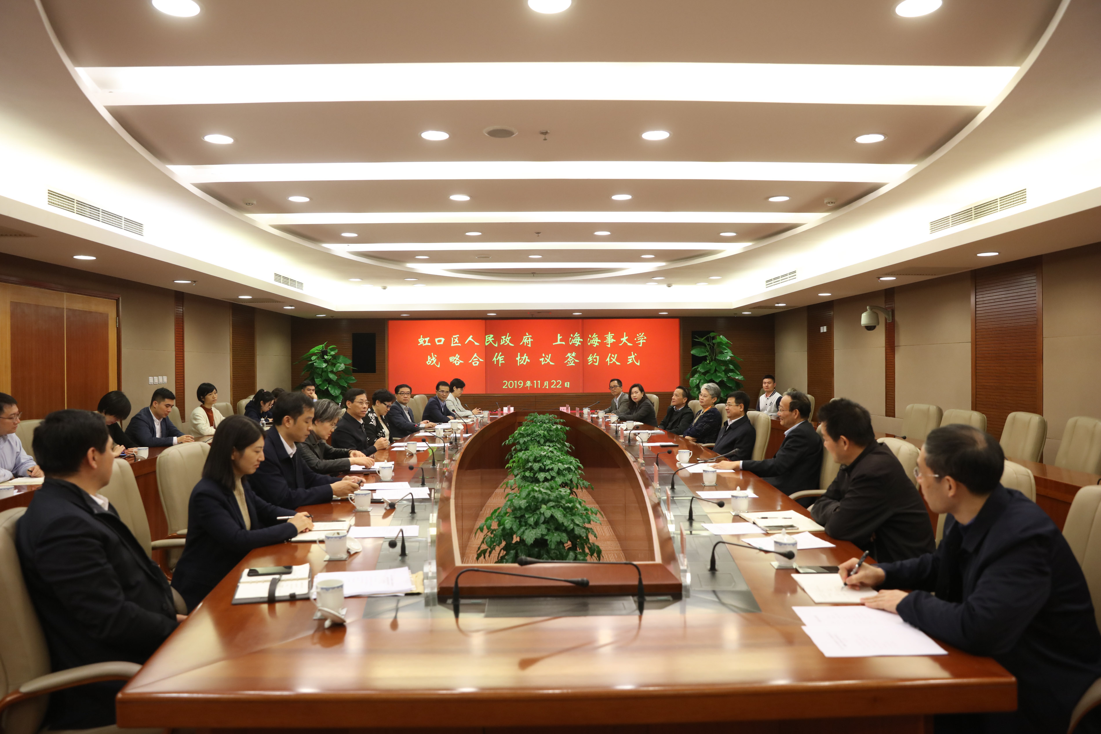 11月22日中午,上海市虹口区人民政府与上海海事大学战略合作协议签约仪式在虹口区政府举行。虹口区委书记吴信宝,区委常委、副区长高香,副区长郑宏;上海海事大学党委书记宋宝儒,校长黄有方,党委副书记门妍萍,副校长施欣、严伟;虹口区委办、区府办、区委组织部、区教育工作党委、区投促办和上海海事大学党办、校办、上海国际航运研究中心等相关部门、单位负责人出席。签约仪式由虹口区委副书记洪流主持。
