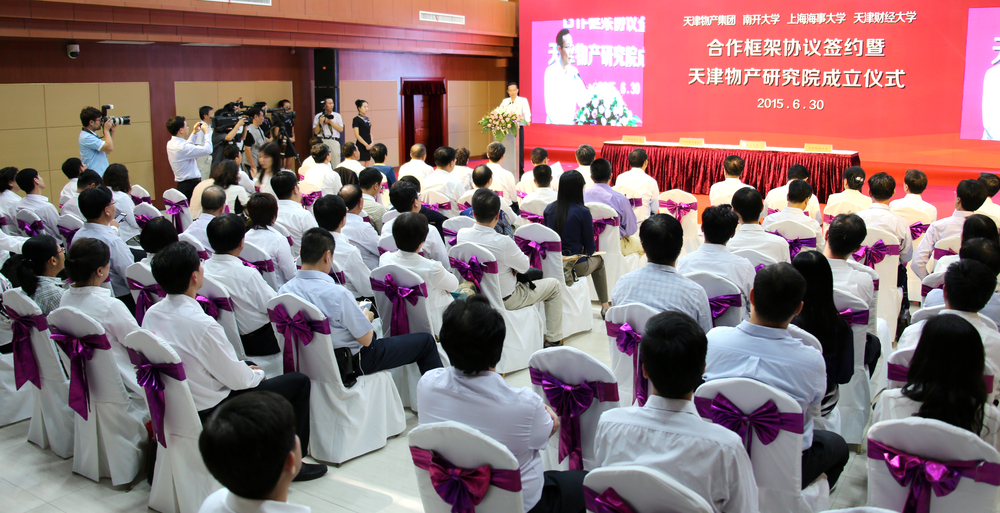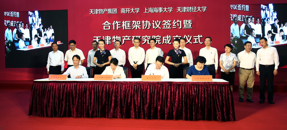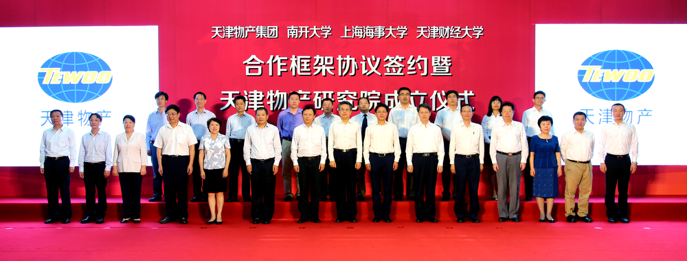 6月30日下午,天津物产集团、上海海事大学、南开大学、天津财经大学四家单位签订校企合作框架协议,共同组建天津物产研究院。天津物产集团党委书记兼董事长王玉柱、总经理张晓轩、党委副书记张伟、纪委书记王秉勇、副总经理刘禄,中国物流与采购联合会会长何黎明、副会长蔡进,天津市国资委党委书记、主任李福明,南开大学校长龚克,我校校长黄有方,天津财经大学党委书记王玉英等出席仪式。仪式由天津物产集团张晓轩总经理主持。