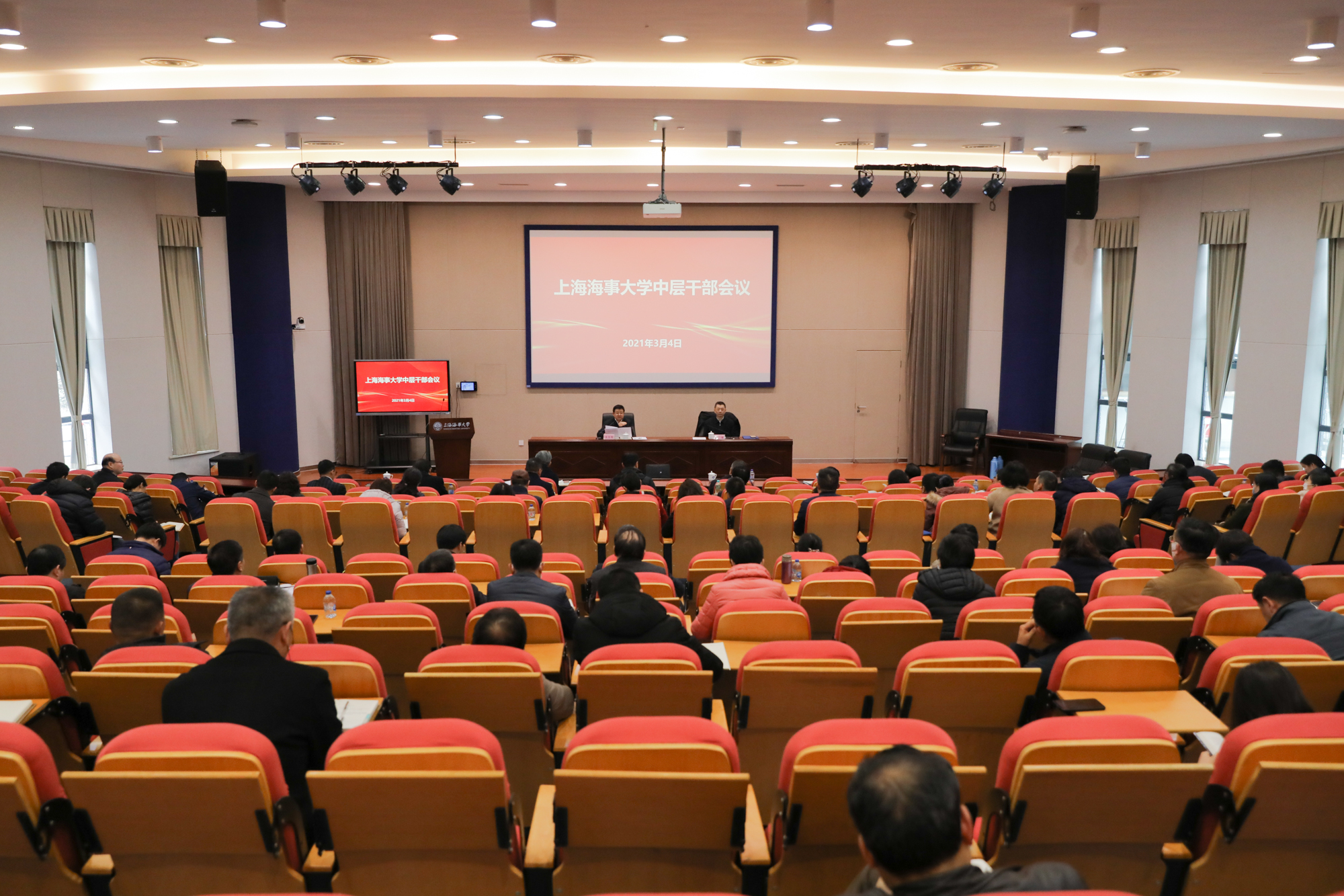 3月4日下午,上海海事大学召开中层干部会议,传达2021年春季上海高校党政负责干部会议精神,并部署今年工作重点。全体校领导出席,两委委员、中层干部,人大代表、政协委员,各学院学术委员会主席、学位点负责人、重点研究基地负责人,民主党派、民族联负责人、知识分子联谊会负责人参会。校党委书记宋宝儒主持会议。