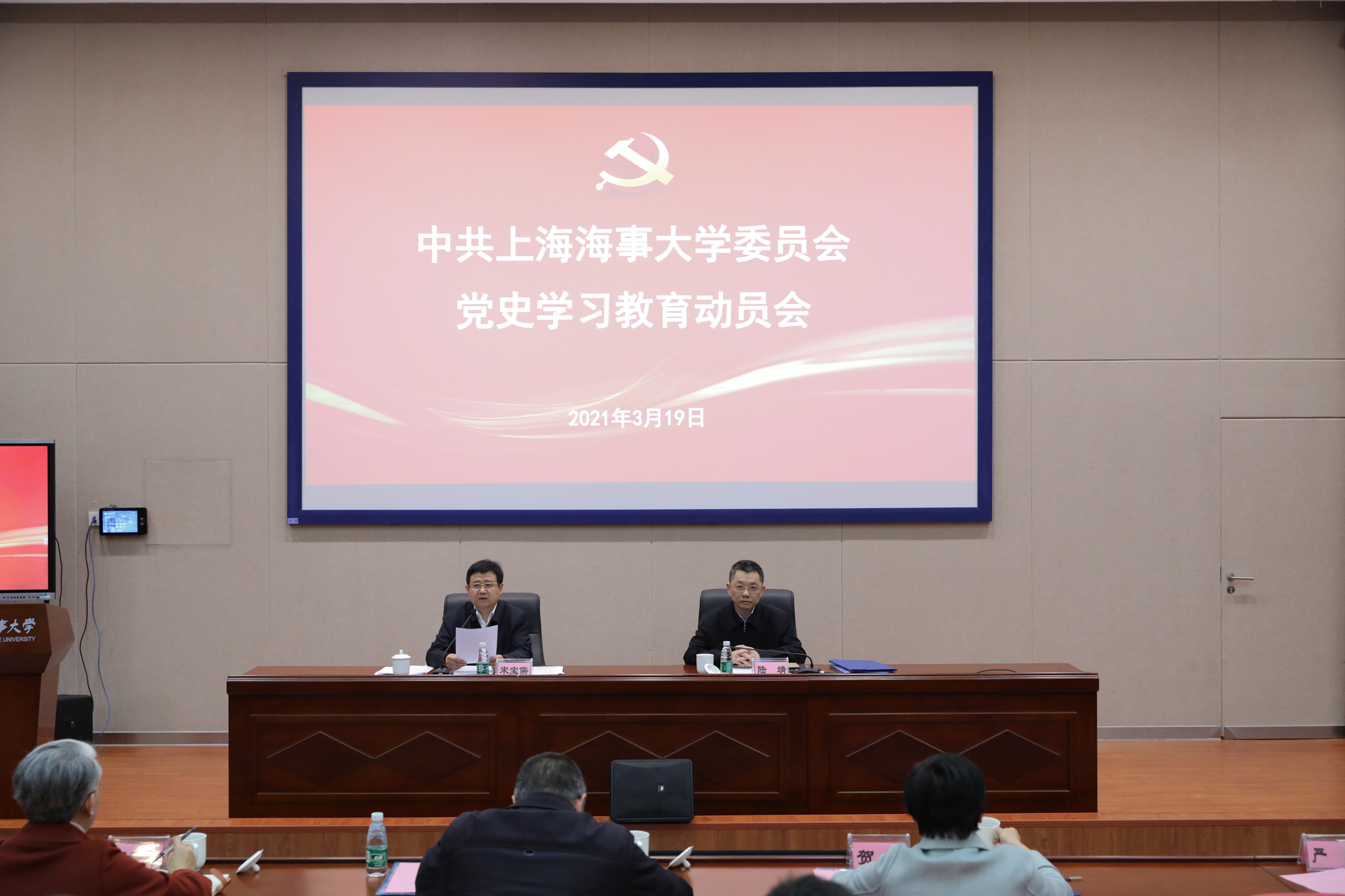 3月19日下午,上海海事大学召开党史学习教育动员会,深入学习贯彻习近平总书记在党史学习教育动员大会上的重要讲话精神,认真落实中央、上海市委、市教卫工作党委有关要求,对开展党史学习教育进行具体部署。校党委书记宋宝儒出席并作动员讲话。学校领导班子成员、全体中层干部参加会议,会议由党委副书记、校长陆靖主持。