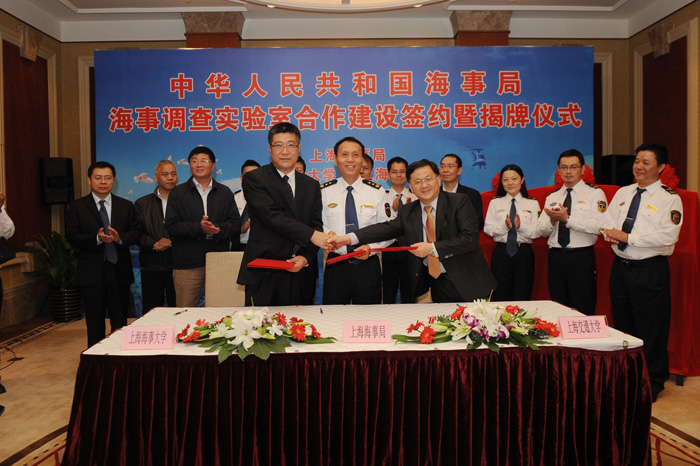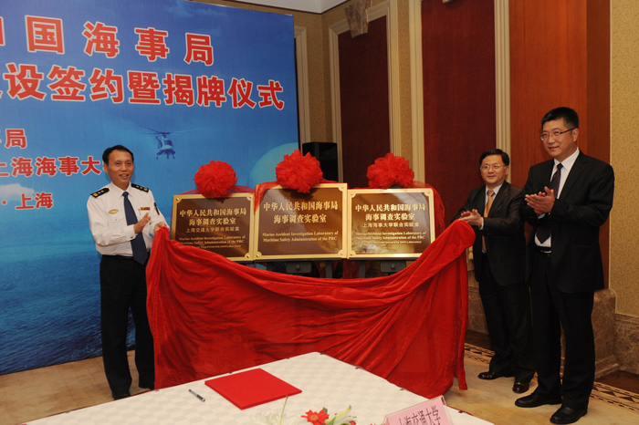 10月26日上午,我国首个海事调查实验室——中华人民共和国海事局海事调查实验室合作建设签约暨揭牌仪式在上海举行。上海海事局副局长晨晓光、上海海事大学副校长杨万枫及上海交通大学副校长陈刚代表各方出席揭牌仪式并签订共建协议。