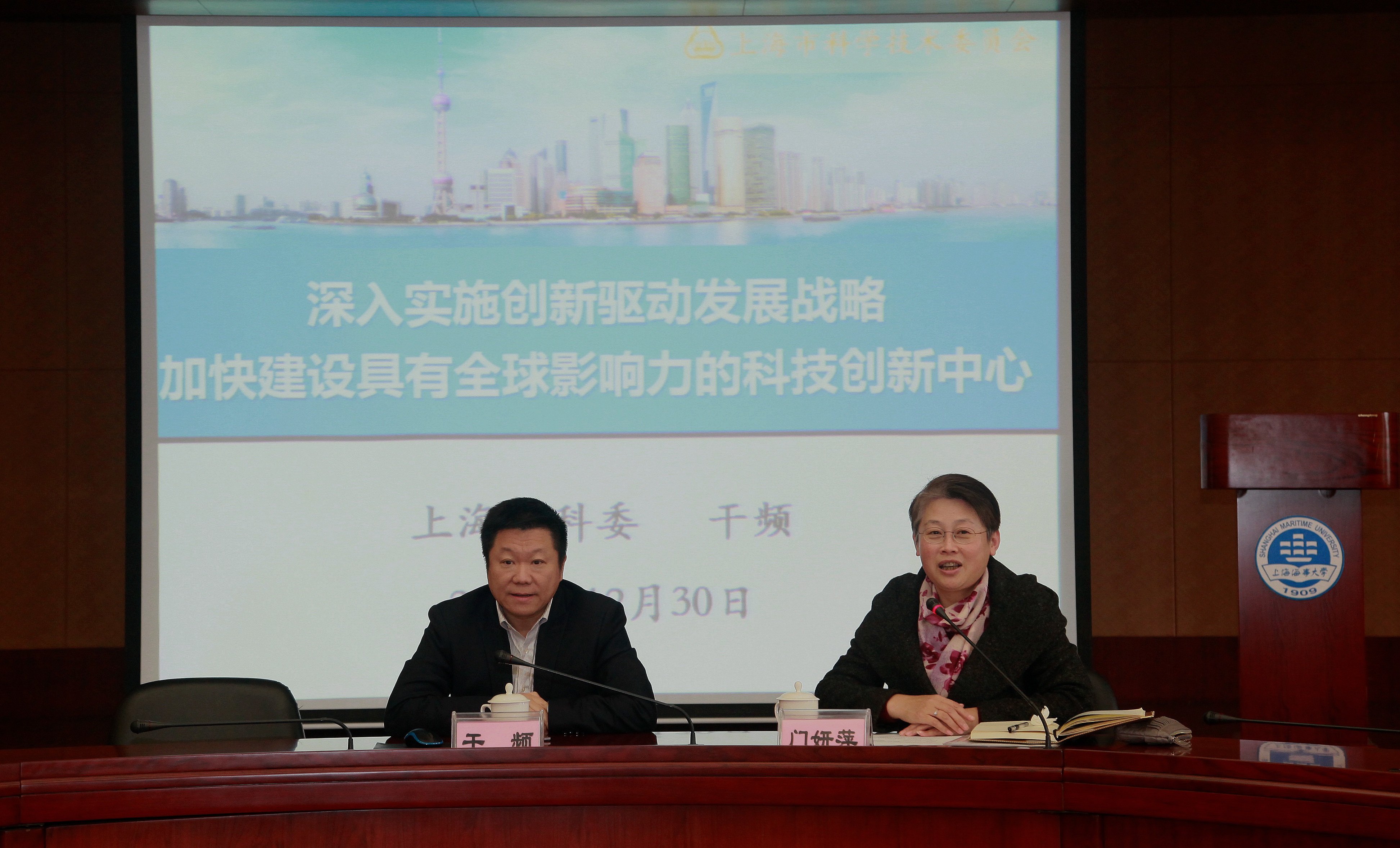 为进一步积极主动对接上海科创中心建设,12月30日,上海海事大学邀请上海市科委副主任干频来校,为校党委中心组成员作了题为“深入实施创新驱动发展战略,加快建设具有全球影响力的科技创新中心”的辅导报告。报告会由校党委副书记、纪委书记门妍萍主持。