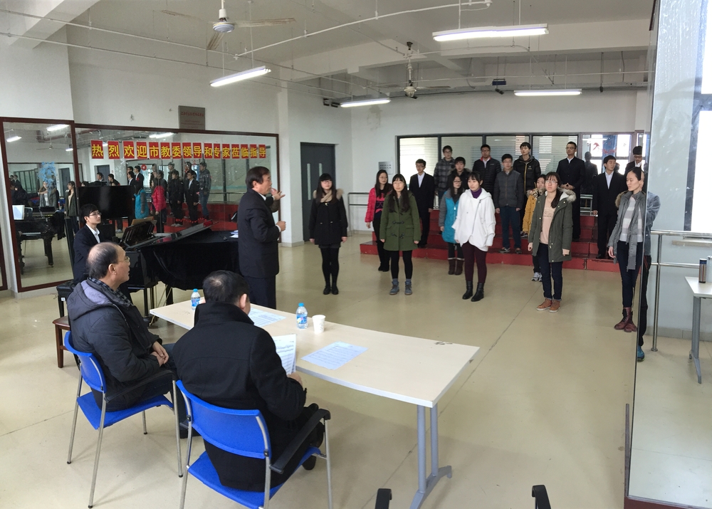 市教委领导及专家考察我校学生合唱团备战全国大学生艺术展演情况