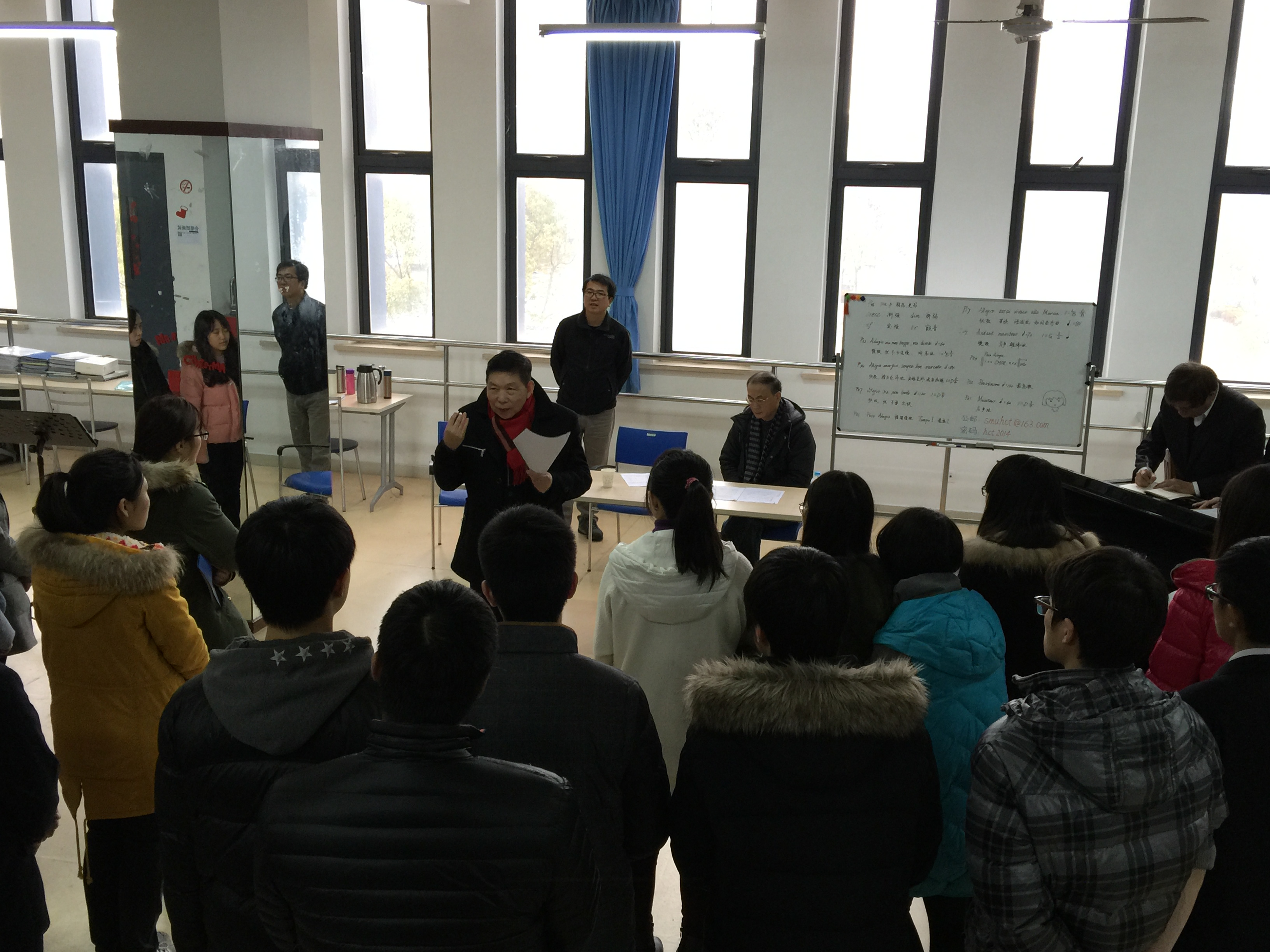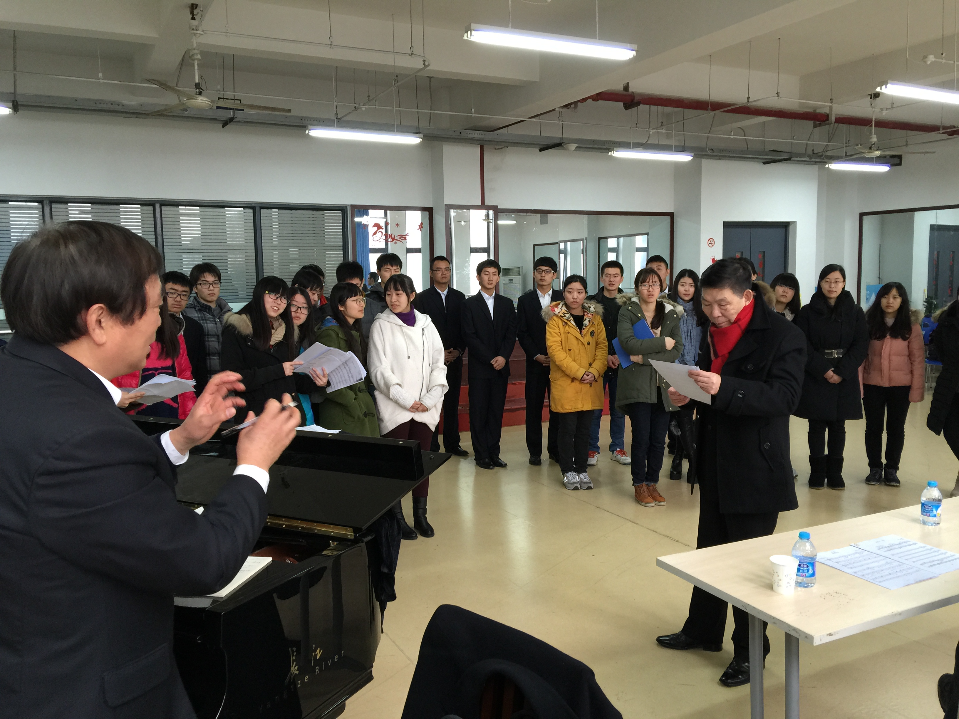 1月30日上午,中国音乐家协会理事、上海音乐家协会合唱专业委员会秘书长郑会武先生和原上海市教委艺教委梁建敏处长莅临上海海事大学,考察指导我校学生合唱团备战全国大学生艺术展演情况。