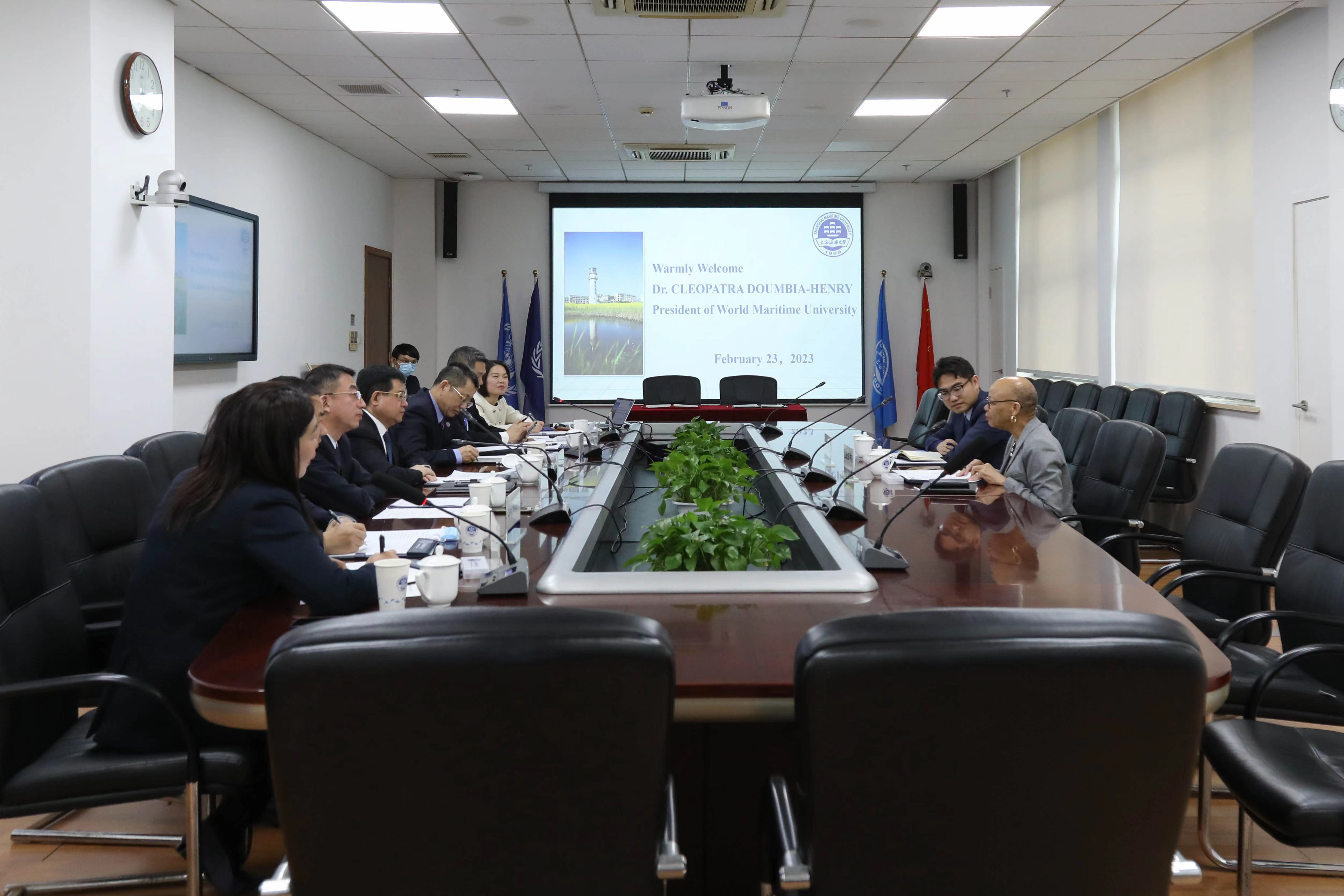 2月23日,世界海事大学校长克利奥帕切•杜姆比亚-亨利博士(Cleopatra Doumbia-Henry)一行来访,并与学校续签中外合作办学协议。校党委书记宋宝儒、校长陆靖、副校长施欣会见了来宾,国际交流处、国际教育学院等相关部门及学院负责人参加会见。