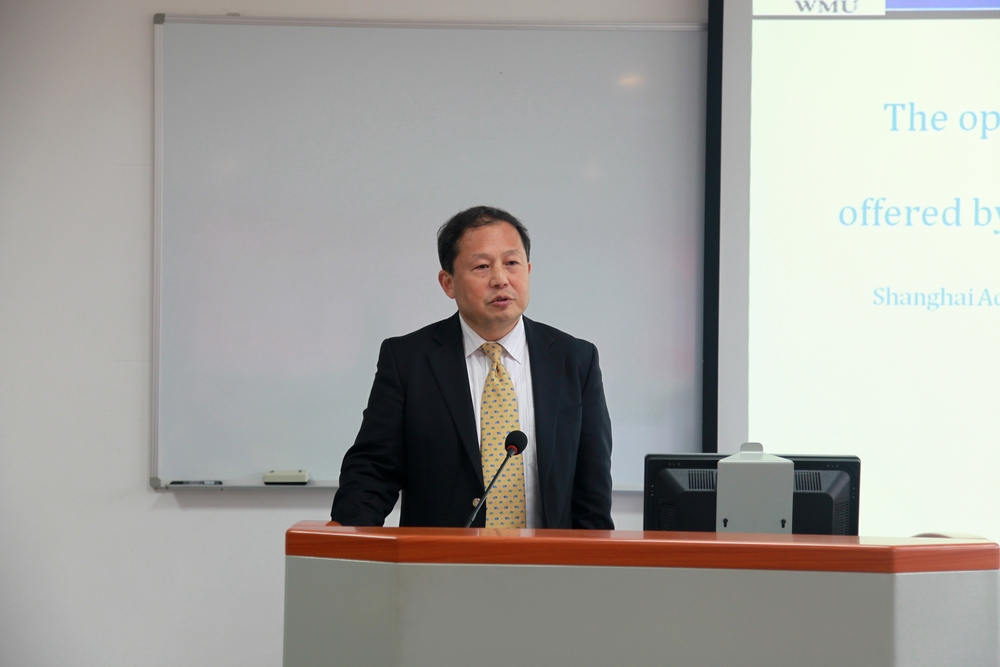 世界海事大学副校长马硕致欢迎辞。他表示,现代航运金融高端人才的短缺,已成为推进上海国际航运中心建设的瓶颈。全球航运形势发展的低谷时期也是储备人才和培养人才的最好时机,只有做好知识储备,才能做航运市场下一轮高潮到来时的最大赢家。世界海事大学与上海海事大学有良好的合作基础,此次合办航运金融高级研修班旨在为业界培养出一批高质量的航运金融高端人才,为推动上海航运金融中心的建设打下良好基础,以满足上海、中国乃至整个亚洲市场对国际航运金融高级人才的迫切需求。