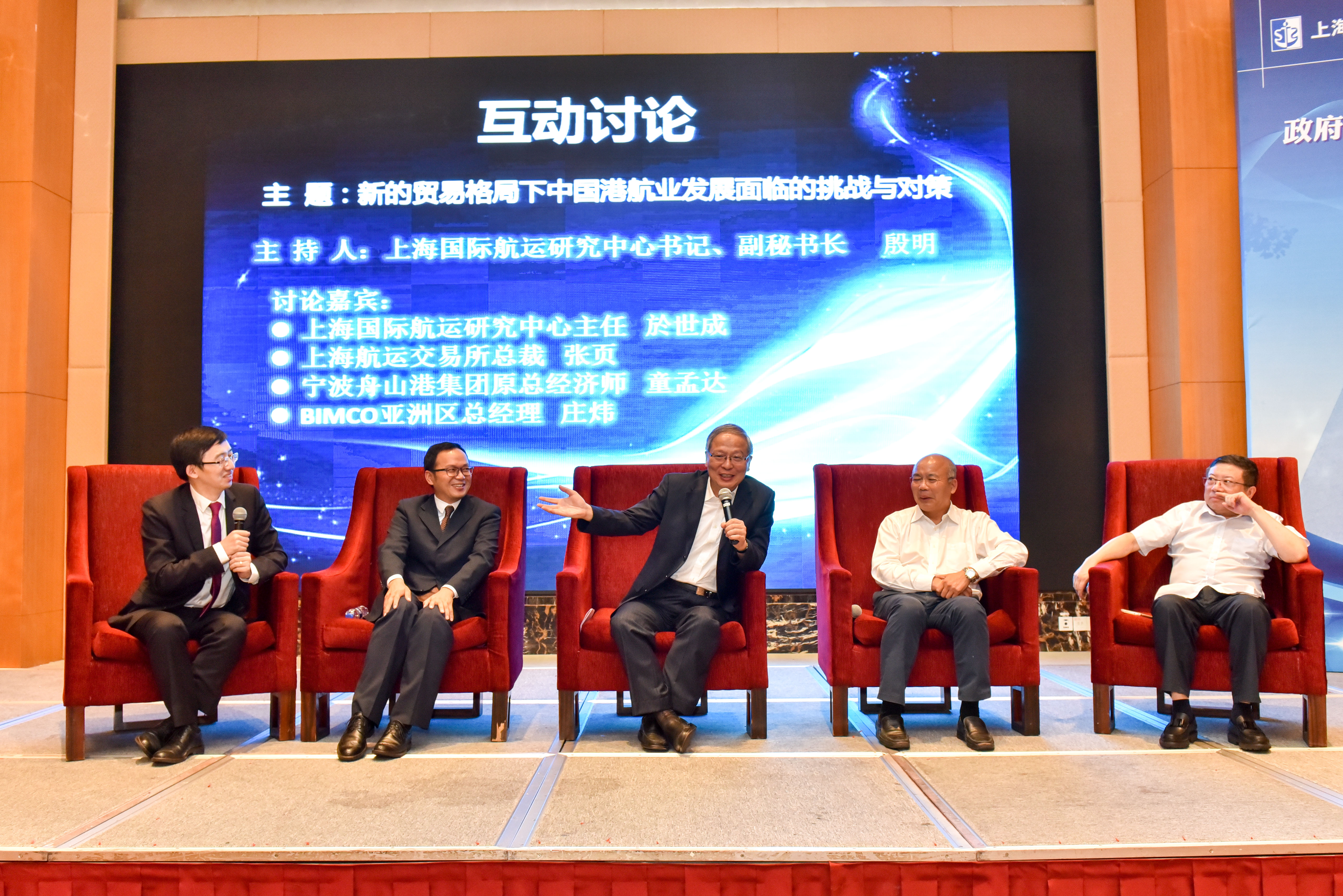 在论坛讨论环节,上海国际航运研究中心主任於世成、上海航运交易所总裁张页、宁波舟山港集团原总经济师童孟达和BIMCO亚洲区总经理庄炜等专家,围绕“新的贸易格局下中国港航业发展面临的挑战与对策”的主题,发表了自己的真知灼见。