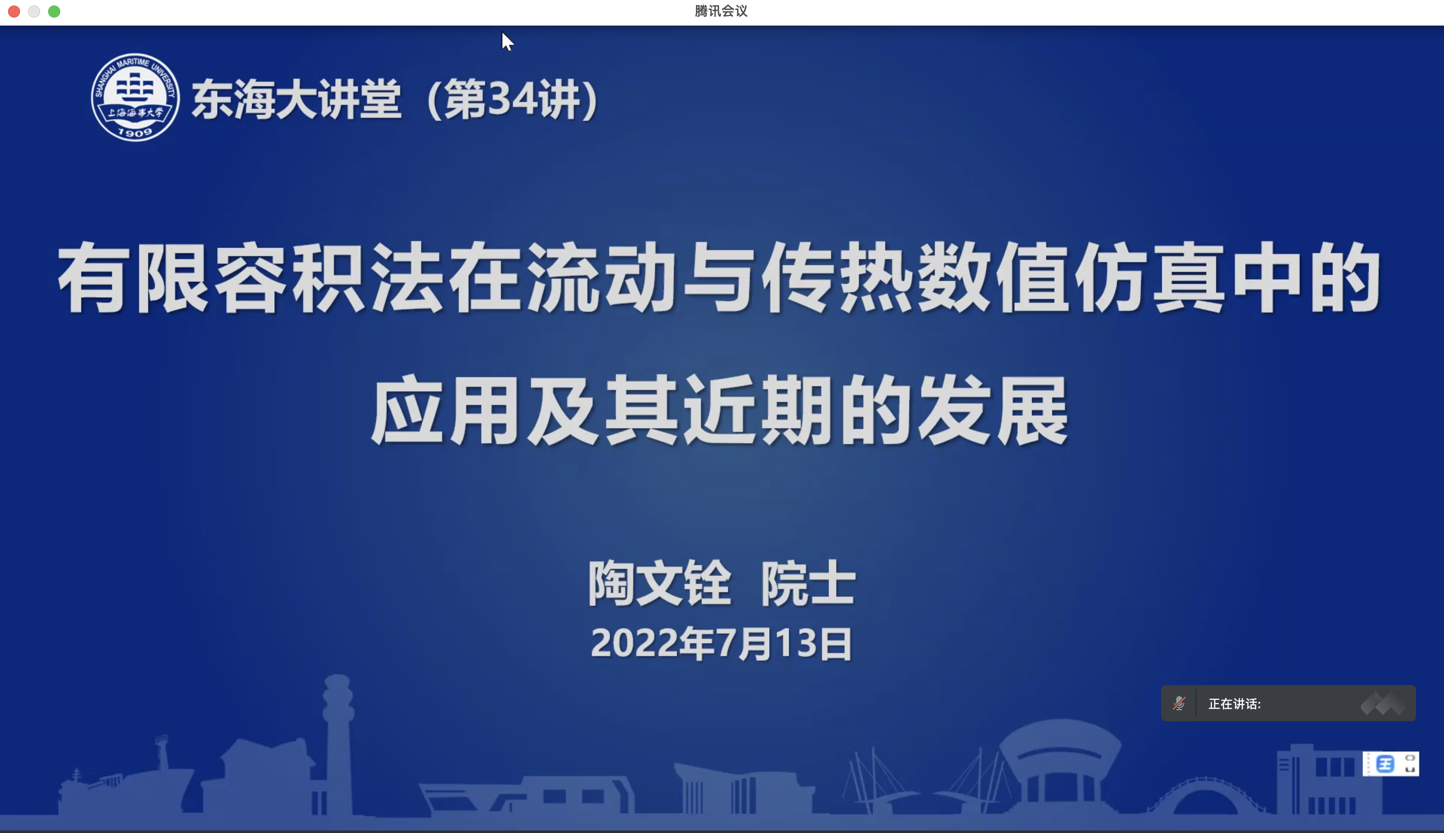 7月13日下午,学校系列高层次人才专家讲座活动——“东海大讲堂”第34讲开讲。陶文铨院士应邀为学校师生作题为“有限容积法在流动与传热数值仿真中的应用及其近期的发展”的学术报告。报告会由严伟副校长主持。相关职能部门、学院和研究基地负责人,及该领域师生共300人参会。