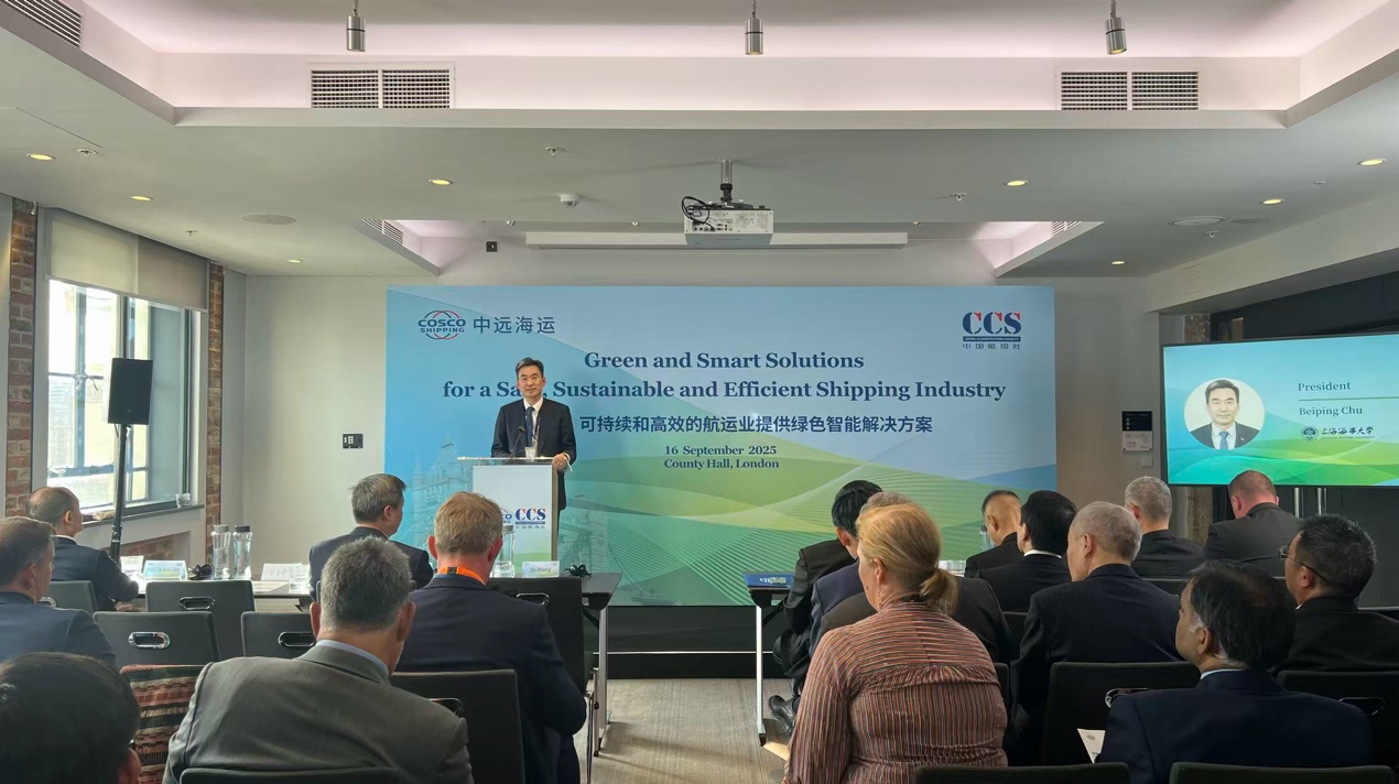 9月16日,中国远洋海运集团与中国船级社在第十二届伦敦国际航运周(LISW2025)期间联合主办“为安全、可持续和高效的航运业提供绿色智能解决方案”主题论坛。中国驻英国大使馆临时代办王起、IMO秘书长阿森尼奥·多明格斯(Arsenio Dominguez)、中国远洋海运集团董事总经理朱碧新、中国船级社(CCS)总裁赵晏等出席本次论坛并发表致辞。初北平校长出席论坛并作题为“拥抱变革,加强国际合作,推动航运服务助力全球经济发展”的主旨演讲。