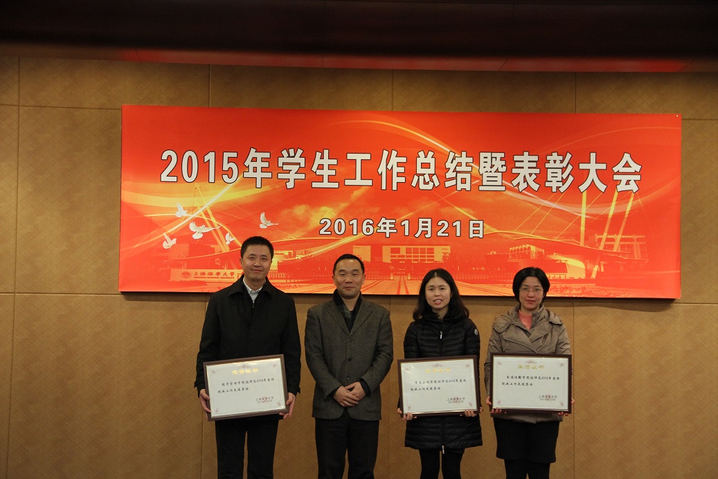 大会表彰了2013-2015年度优秀辅导员、辅导员职业能力大赛获奖者和就业工作先进集体及个人,并为2015-2016年度辅导员示范岗颁发聘书。就业工作先进个人代表马士群、优秀辅导员代表张立平、2015年上海市辅导员职业技能大赛三等奖得主杨芳梅先后发言,交流了各自工作中的经验和体会。