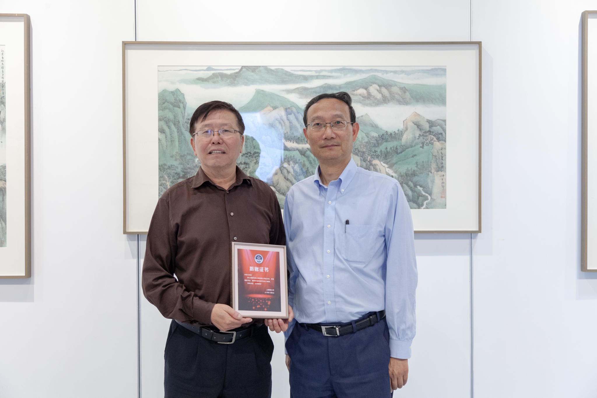 在书画作品捐赠仪式上,黄有方校长为许承兴老师和宋智容老师颁发捐赠证书,并对两位老师为学校做出的贡献表示感谢。