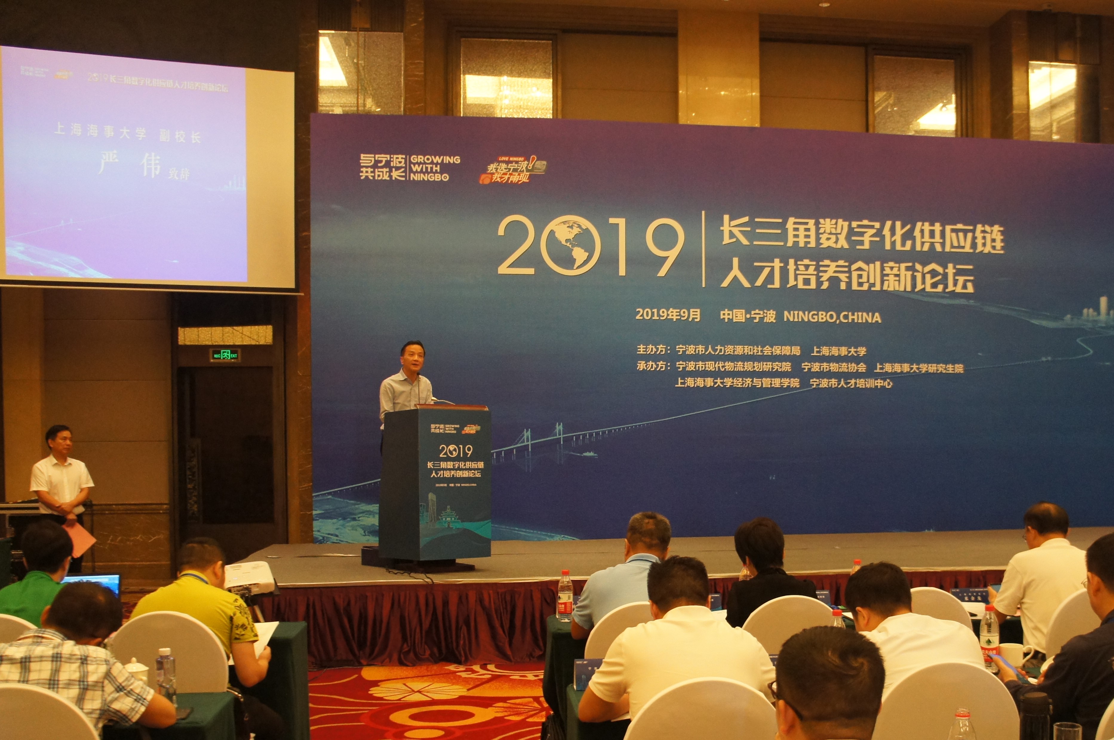 9月20日下午,由上海海事大学联合宁波市人力资源和社会保障局主办的2019年度长三角数字化供应链人才培养创新论坛在宁波市举行。上海市学位办公室主任束金龙、上海海事大学副校长严伟、宁波市人民政府副秘书长顾立群等出席,我校相关学院、职能部门负责人参加论坛。