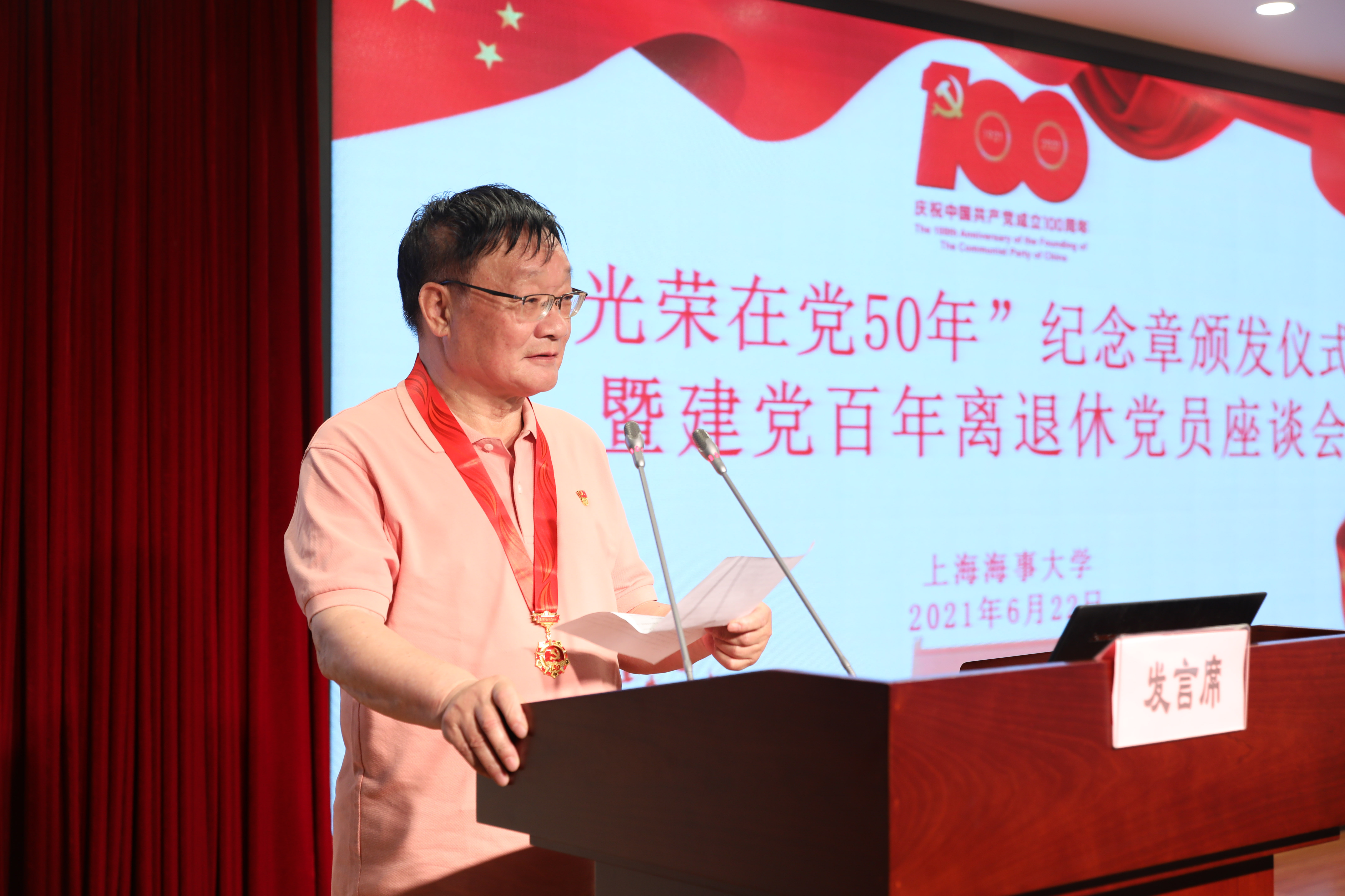 6月22日下午,学校召开“光荣在党50年”纪念章颁发仪式暨建党百年离退休党员座谈会。校党委书记宋宝儒、副校长栗建华、老党员代表、相关职能部门负责人等共聚一堂,见证这个光荣的时刻。