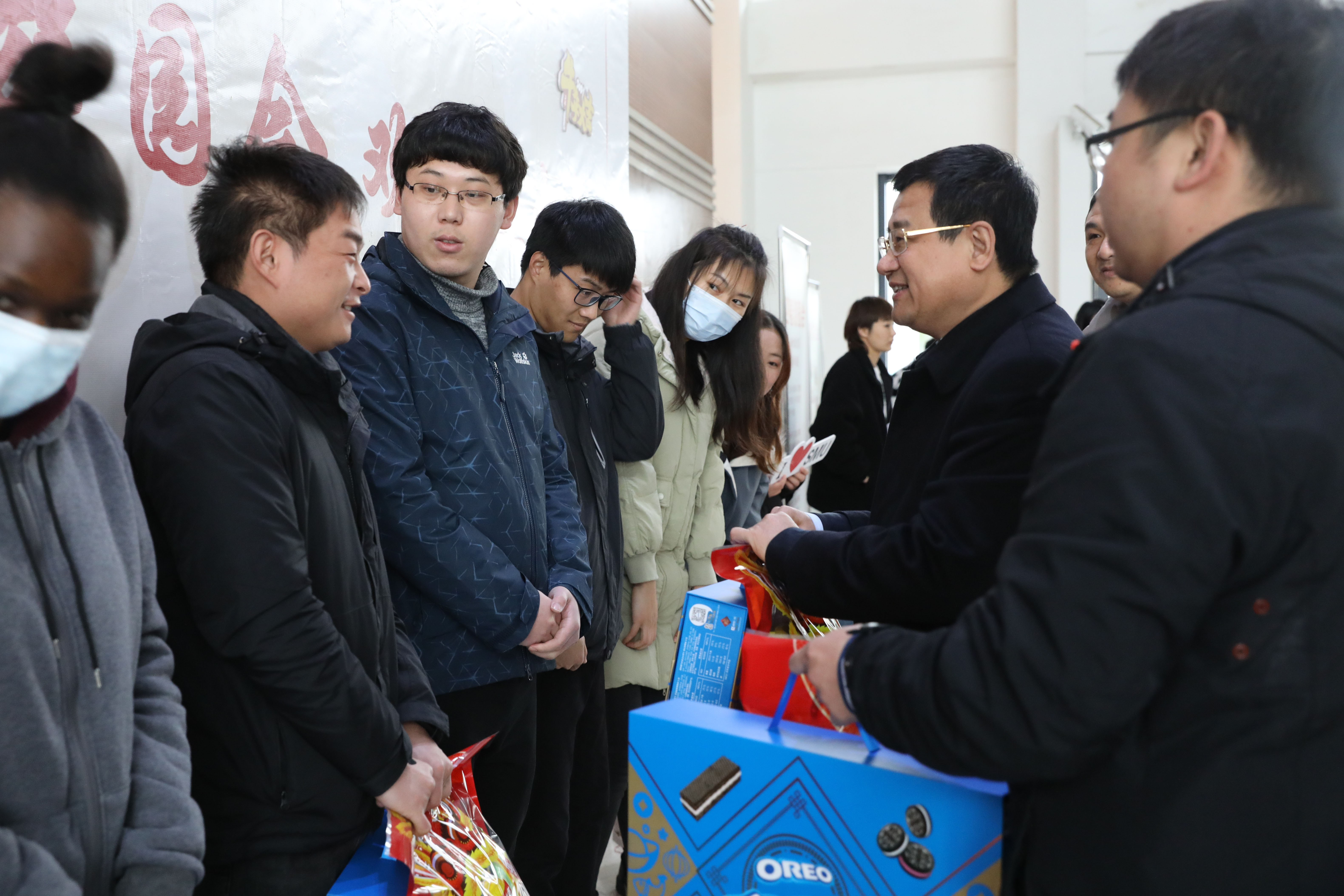 2月11日下午,迎春游园会在学生服务中心举行,此次迎春游园会除了设置猜灯谜、趣味跳绳、健康蛙跳等项目外,还加入了同心协力“幸运传递”、打沙包、滚铁环、套圈投壶等适合学生们自由组团、组队或单兵作战的内容,以多样的形式吸引学生广泛参与。游园会期间,校党委书记宋宝儒看望了留校学生,并向他们一一送上新年祝福和大礼包。