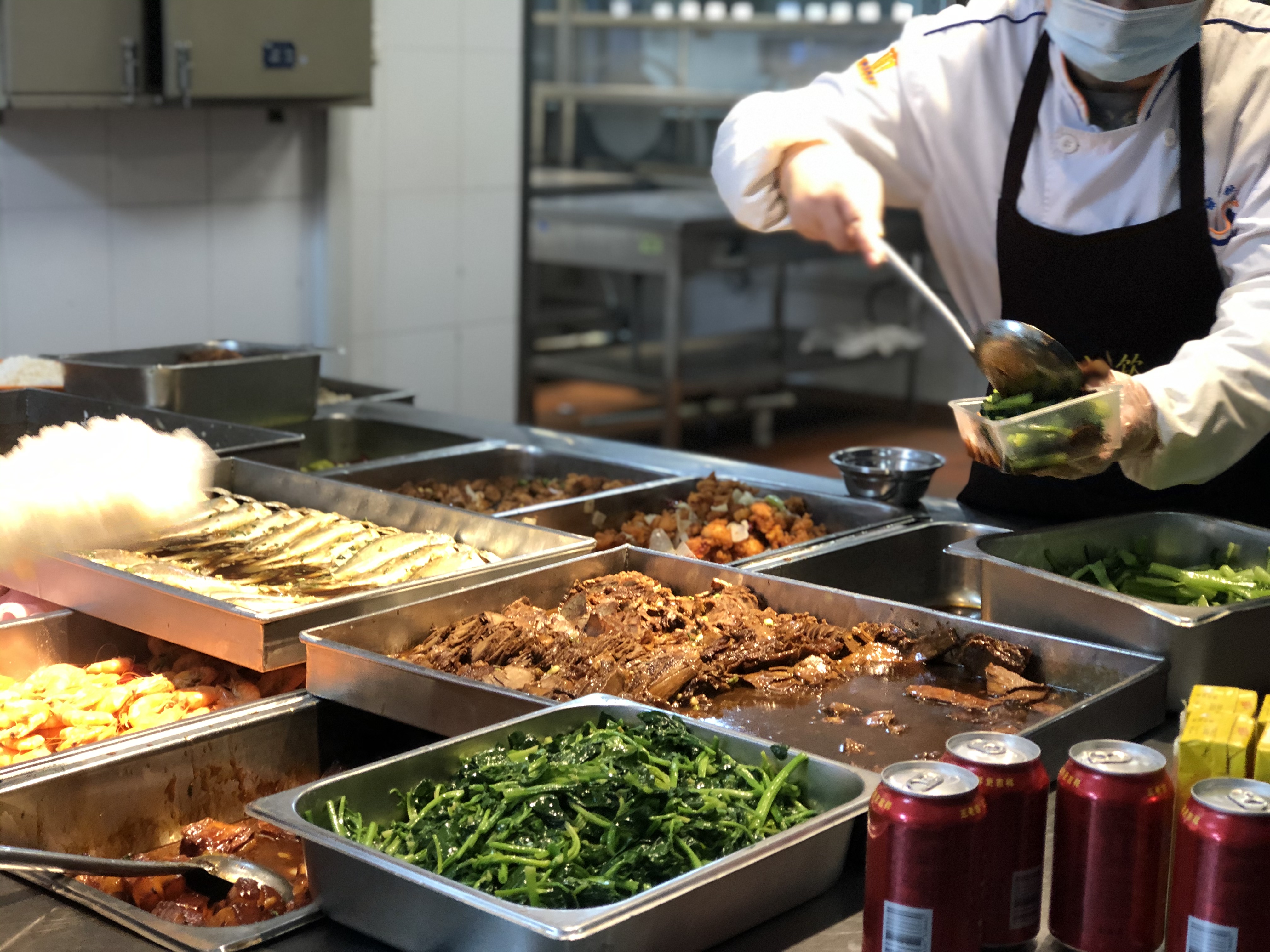 为满足来自全国各地的留校学生不同饮食需求,学校食堂精心准备了种类众多的菜品,食堂师傅也很早就开始着手准备年夜饭,从菜谱设定、原材料选购再到菜品烹饪、摆盘造型等各个环节都下足了心思。由于疫情防控需要,除夕年夜饭学生在食堂就餐,所有菜品摆在窗口,以自助的形式供学生选择,旨在让留校学生们感受到浓浓的“年味”。