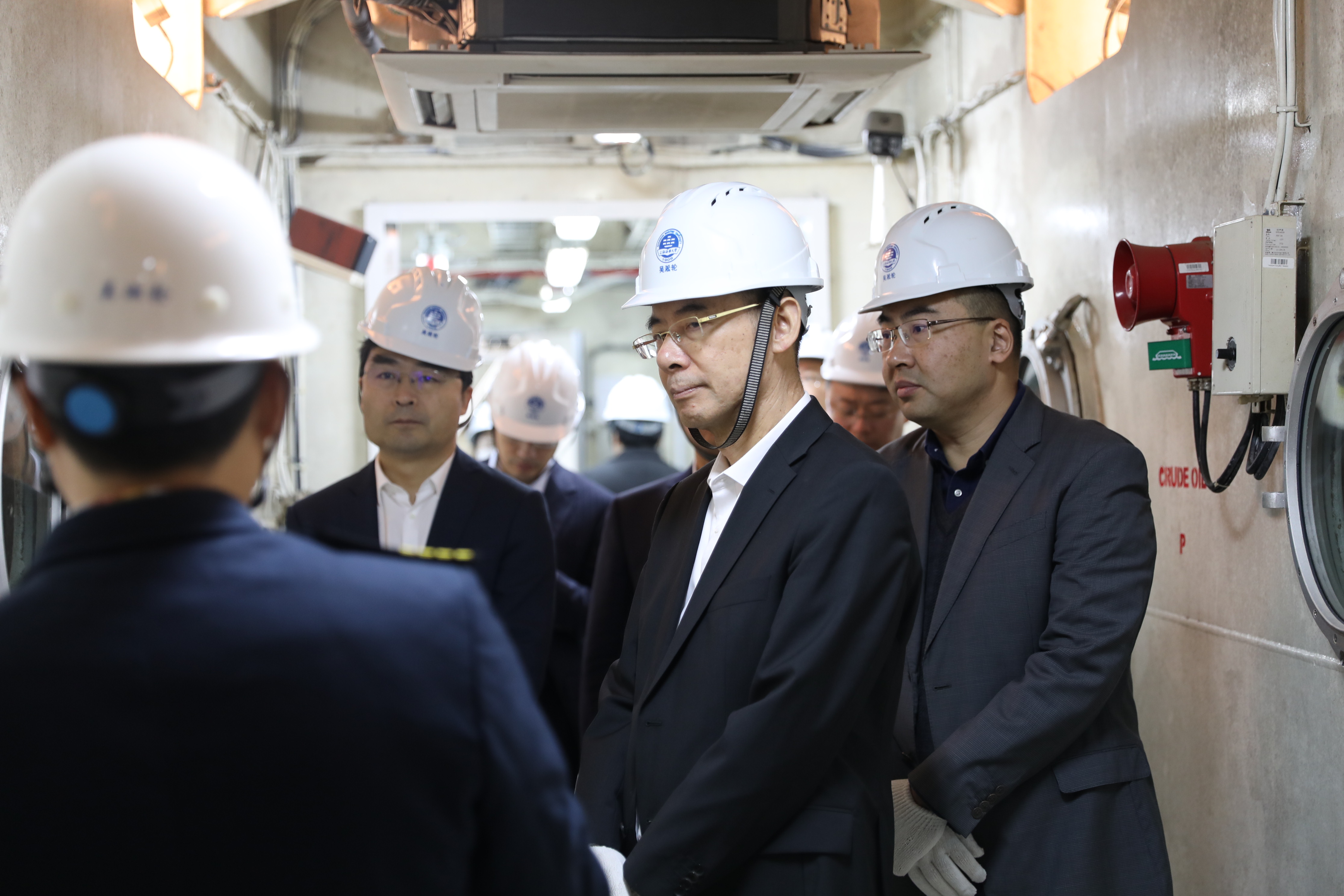 青岛市人社局嘉宾一行还参观了校史馆、“吴淞”号组合式液货模拟船。