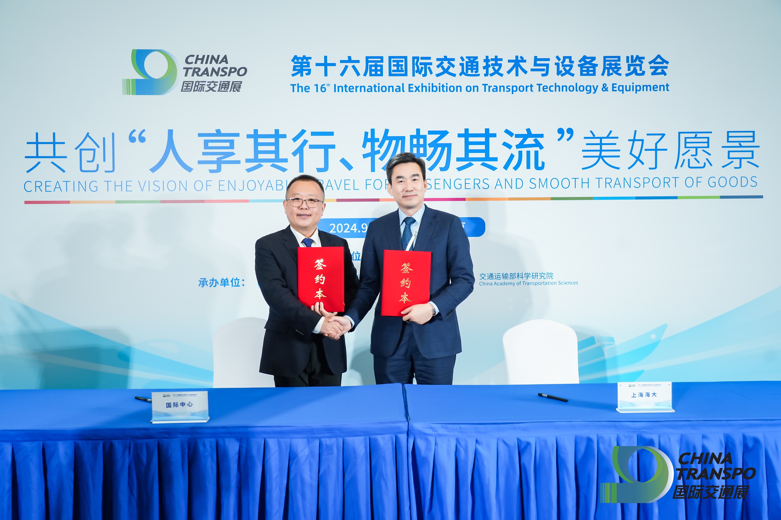 初北平、刘鹏代表双方签署了上海海事大学与中国国际可持续交通创新和知识中心战略合作协议。