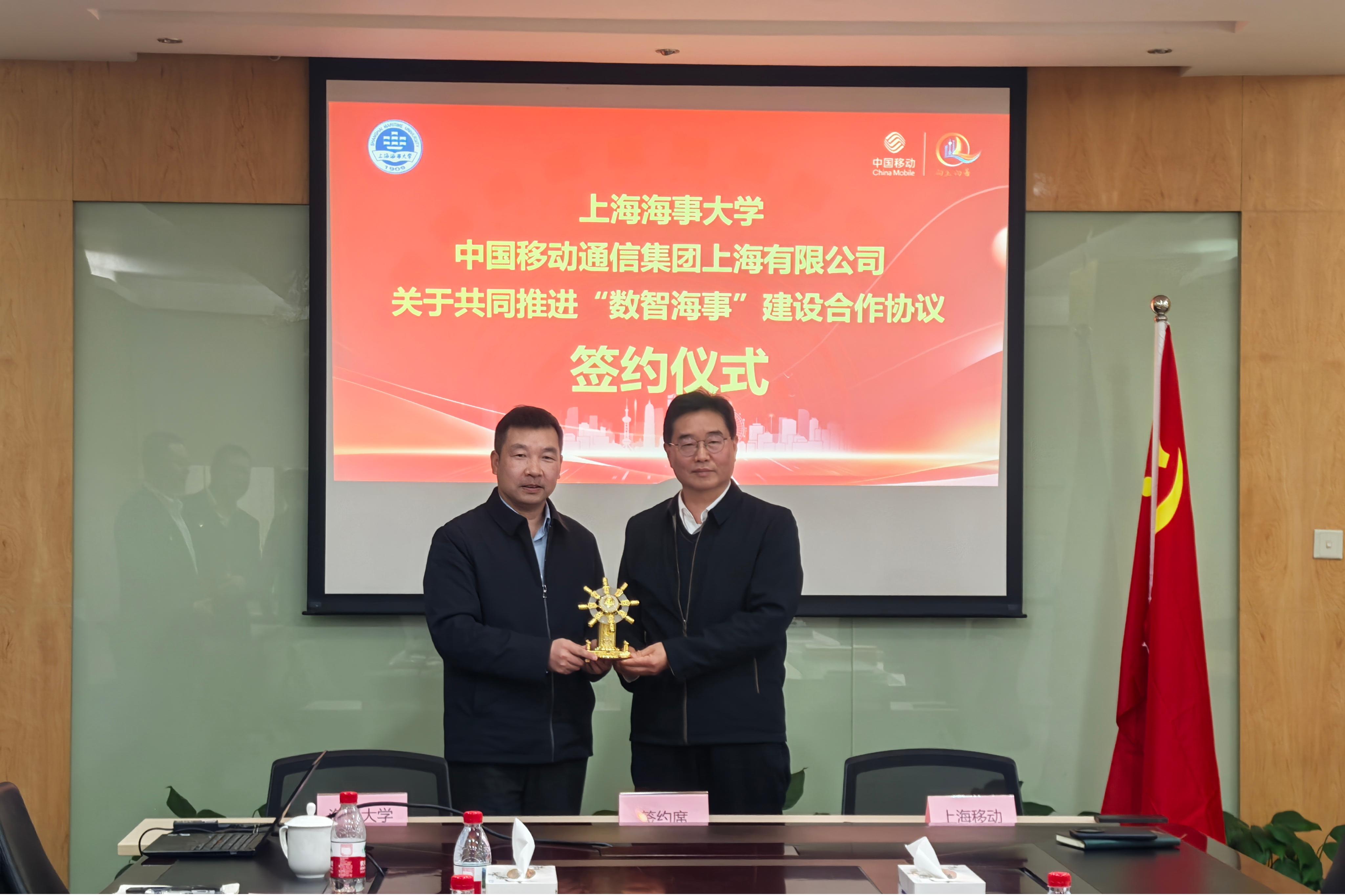 2月25日,学校和中国移动通信集团上海有限公司(以下简称“上海移动”)关于共同推进“数智海事”建设的签约仪式在上海移动浦东大楼举行。校党委副书记、副校长李志鹏,中国移动通信集团上海有限公司董事、党委委员、纪委书记顾学峰出席,上海移动党建工作部、浦东分公司相关负责人,学校信息化办公室相关负责人参加签约仪式。
