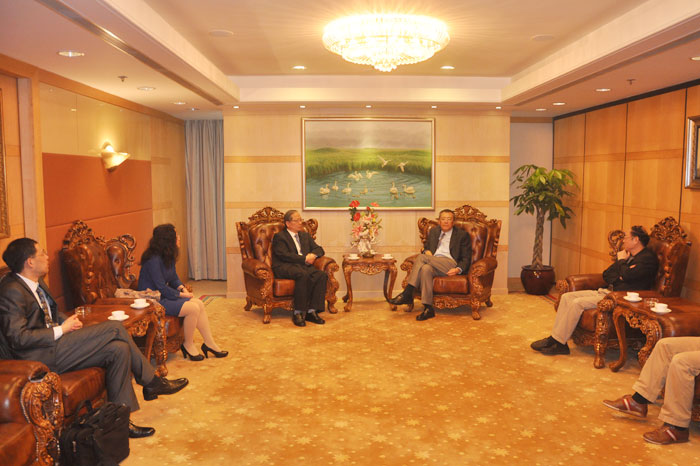 25日上午,於世成一行访问中远(香港)集团有限公司,与张良总裁会谈交流,并一同出席香港船东会午餐会,与香港船东会董事会成员座谈。席间,於书记就上海国际航运中心建设和上海自贸区的发展发表专题演讲。
