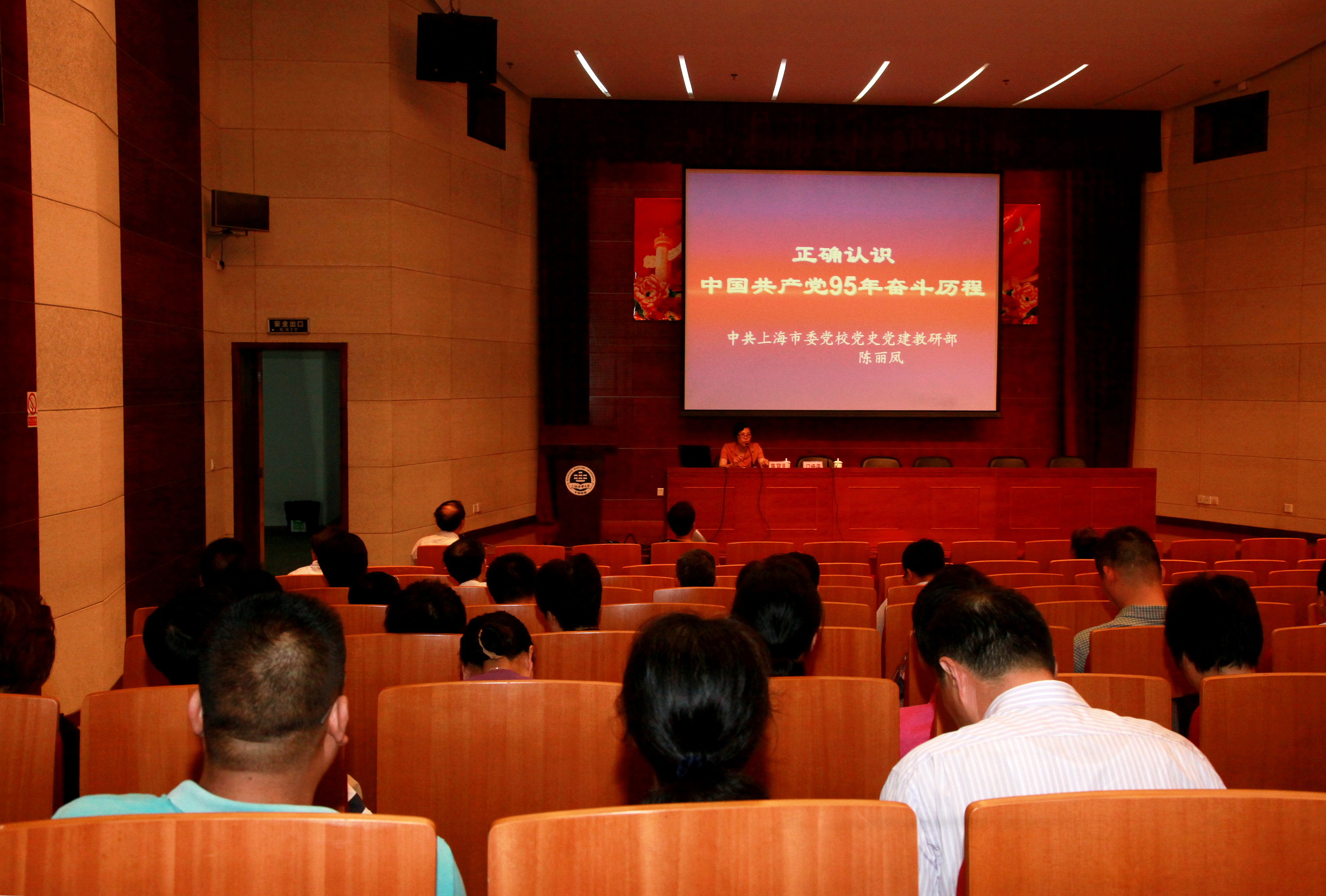 6月24日下午,中共上海市委党校、上海行政学院党史党建教研部教授、市委“两学一做”讲师团成员陈丽凤来到上海海事大学,为校党委中心组成员、社科部教师作了题为《正确认识中国共产党95年奋斗历程》的辅导报告。校党委副书记、纪委书记门妍萍主持报告会。