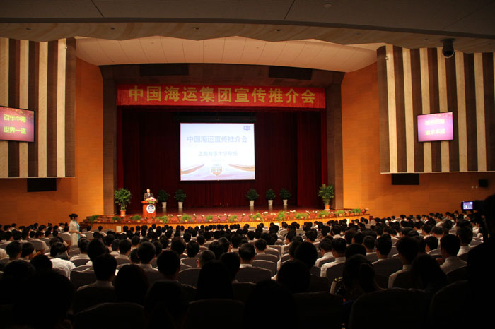 随后,中国海运集团宣传推介会在大礼堂举行。会议由孔凡邨副校长主持。他号召同学们锐意进取,珍惜中国海运集团提供的发展机会,用出色的工作业绩回报中国海运集团。王大雄副总经理就集团业务、发展计划、船员培养及企业文化等方面向学生作宣传推介,充分展示了中国海运集团的风采与魅力。中海国际船舶管理有限公司人力资源部周松诚总经理具体介绍了集团的签约形式、户籍政策及薪酬保障。孔凡邨副校长组织学生与中国海运集团的各位领导进行了互动。