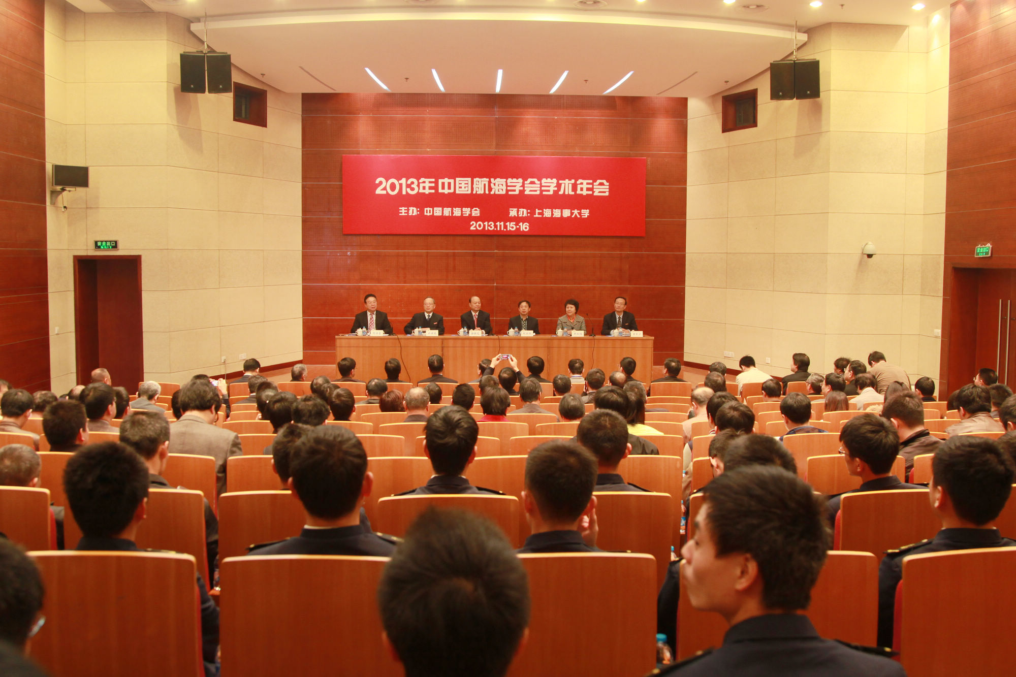 11月15日至16日,2013年中国航海学会学术年会在上海海事大学召开。中国航海学会理事长徐祖远、常务副理事长刘功臣、秘书长赵东野,中国科协学术部副部长刘兴平、上海市科协副主席李虹鸣、交通运输部救捞局局长王振亮、上海海事局局长徐国毅、中国船级社上海分社总经理李华、东海救助局副局长章荣军、上海打捞局副局长白成军、中海集团总经理助理张登辉、中国造船工程学会理事梁启康、交通运输部水运科学研究院副院长贾大山、中国远洋集团总公司总船长赵庆爱、大连海事大学副校长刘正江,中国航海学会副理事长、上海海事大学党委书记於世成,校长黄有方,副书记兼副校长孔凡邨,副校长肖宝家,上海、天津、辽宁、河北、江苏、浙江、湖南等省市航海学会和中国航海学会各专业委员会代表等130余人出席年会。