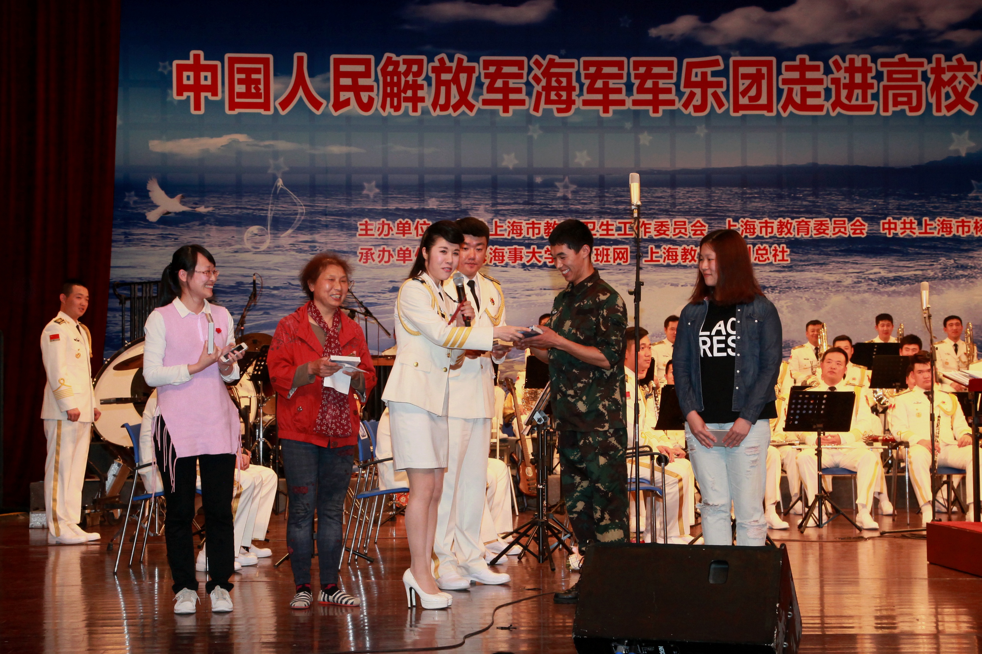 5月4日晚,中国人民解放军海军军乐团走进高校专场音乐会在上海海事大学大礼堂上演。中共上海市教卫党委副书记、市教委副主任高德毅,海军军乐团团长林海峰,副团长王慧星、孙志波,杨浦区委常委、区纪委书记、区委宣传部部长高德彪,以及我校党委书记金永兴,副书记、纪委书记门妍萍,副书记、副校长王海威等与近千名师生一同观看了演出。
