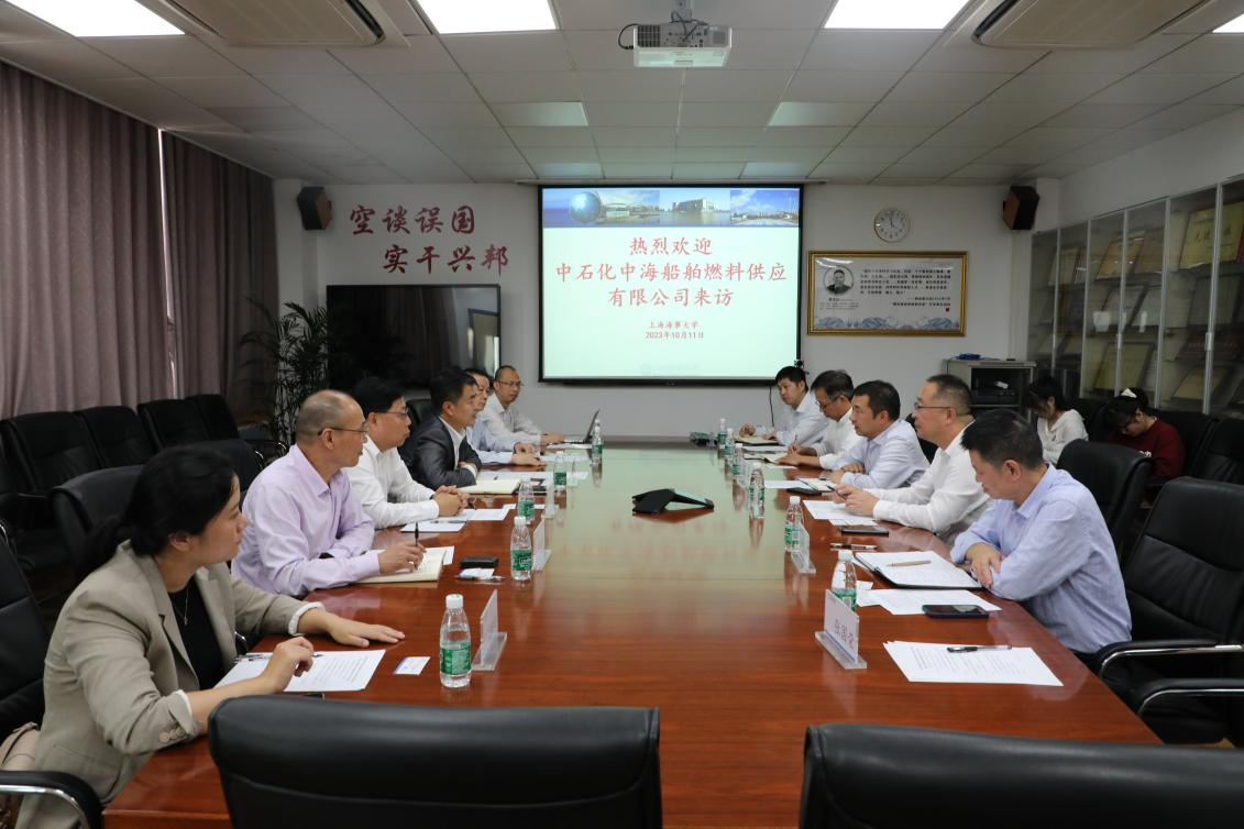 10月11日下午,中石化中海船舶燃料供应有限公司党委书记、总经理秦岭一行到访学校,就校企合作开展交流调研。校党委副书记、副校长李志鹏接待来宾,商船学院负责人和教师代表参会。