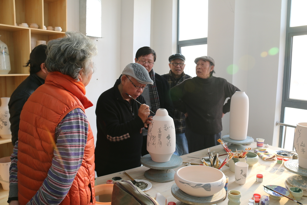 在徐悲鸿艺术学院陶艺工作室,黄有方校长与来访的艺术家进行亲切交流,欢迎各位艺术家的来访,并感谢他们对徐悲鸿艺术学院发展的一贯支持和帮助。艺术家们在陶艺工作室还进行了现场陶艺创作。
