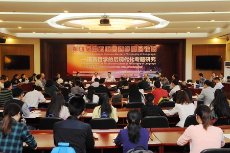 10月16日至18日,由中国英汉语比较研究会中西语言哲学专业委员会主办、上海海事大学外国语学院承办的“第四届中西语言哲学高层论坛”在我校举行。校党委副书记、副校长孔凡邨教授,中西语言哲学研究会会长、四川外国语大学王寅教授等70余位专家、学者参加了此次论坛。 2015-10-19, 星期一 -