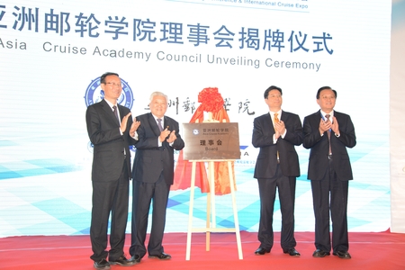 10月13日晚,第十届中国邮轮产业发展大会在上海虹口北外滩开幕。会上,上海海事大学校长黄有方与中国交通运输协会会长钱永昌、虹口区政协主席管维镛、上海国际港务集团总裁严俊为亚洲邮轮学院理事会揭牌。 2015-10-17, 星期六 -