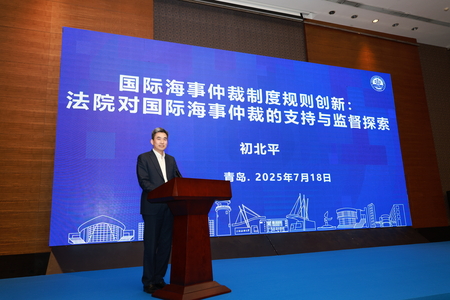 7月18日,由中国船东协会、上海仲裁委共同主办的新形势下航运规则、合规与仲裁专题研讨会在青岛举行。校长初北平应邀参加并作题为“国际海事仲裁制度规则创新:法院对国际海事仲裁的支持与监督探索”的专题演讲。 2025-07-19, 星期六