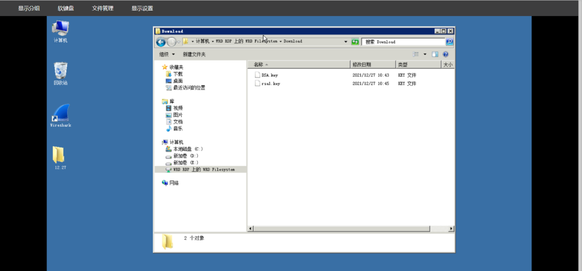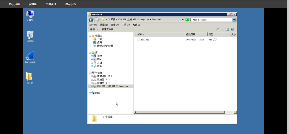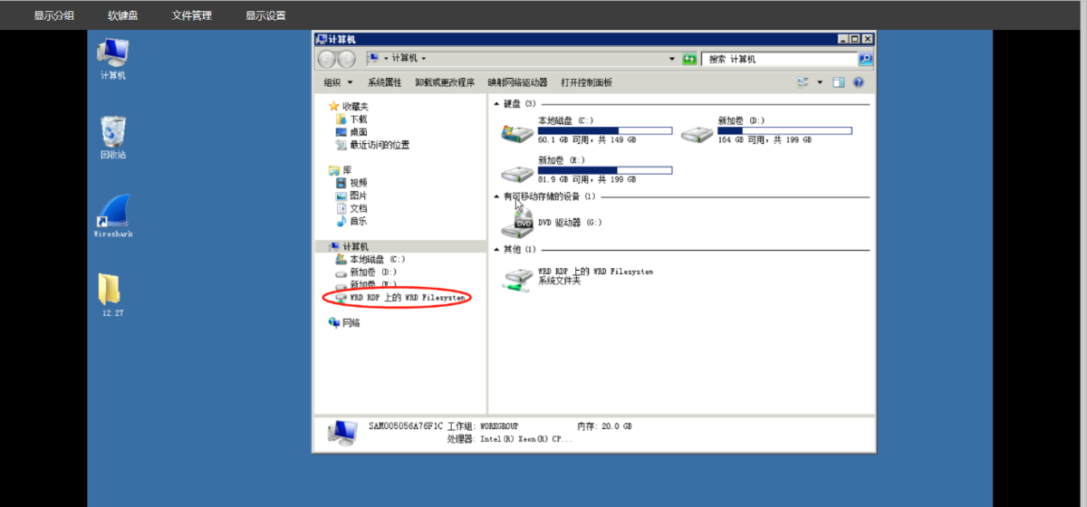 远程通过RDP链接上设备后,打开计算机,将需要下载的文件拷贝到WRD RDP网络共享磁盘中的Download文件夹中