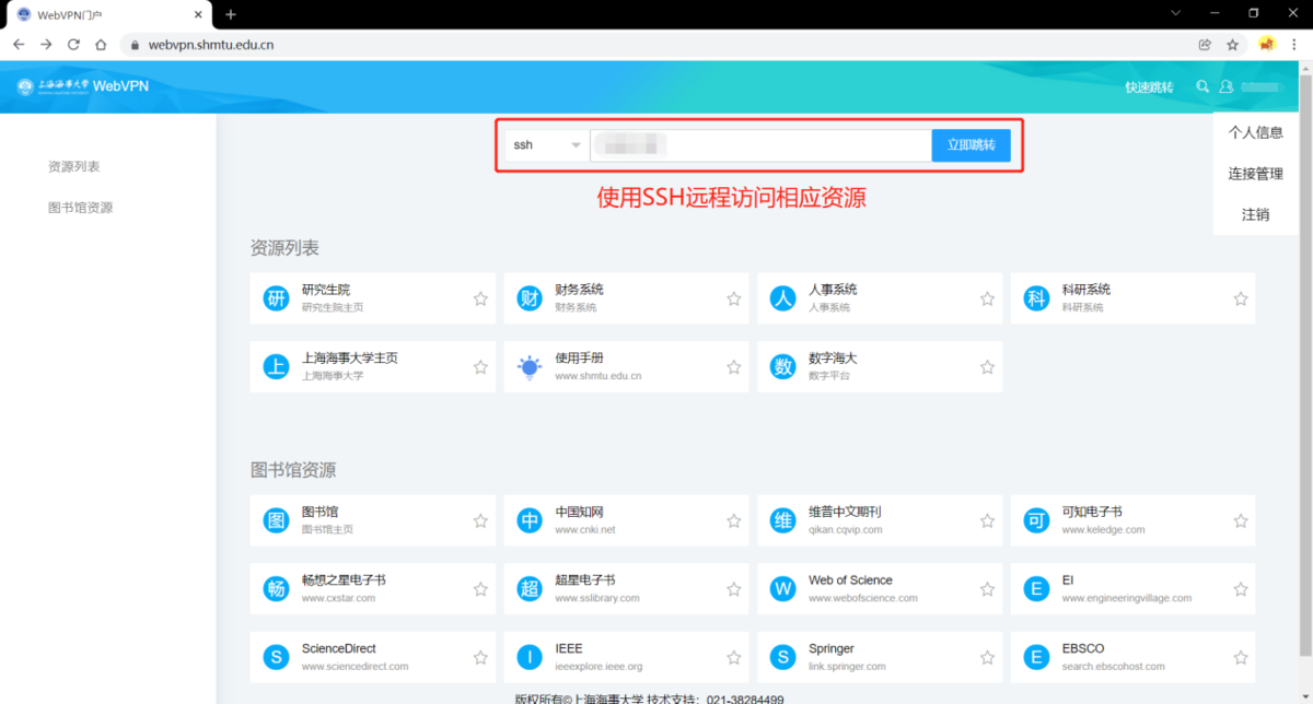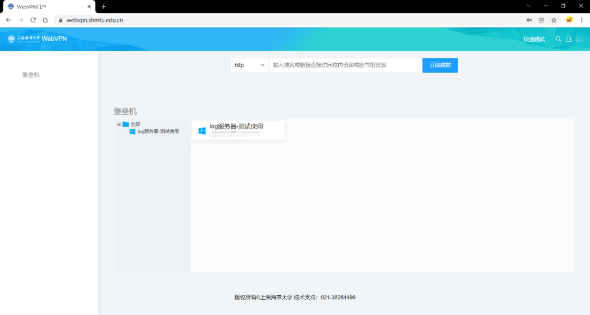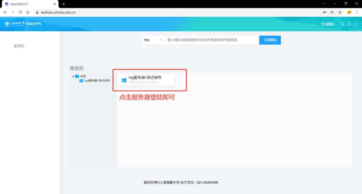 2.1 登录成功进入资源访问界面,点击自己的服务器资源,进入登录界面。