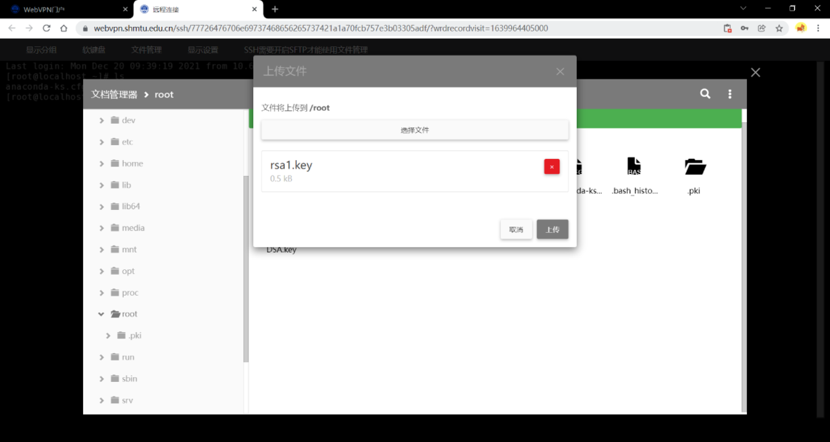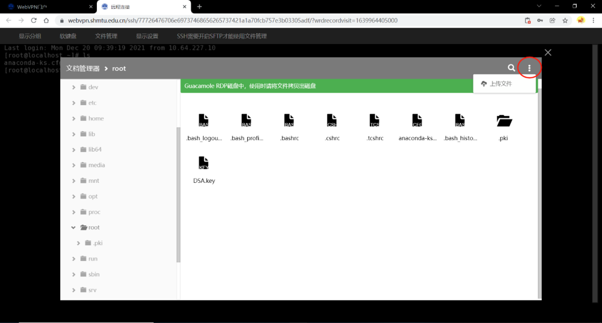 按钮选择“上传文件”跟随后续操作即可上传文件至对应目录。