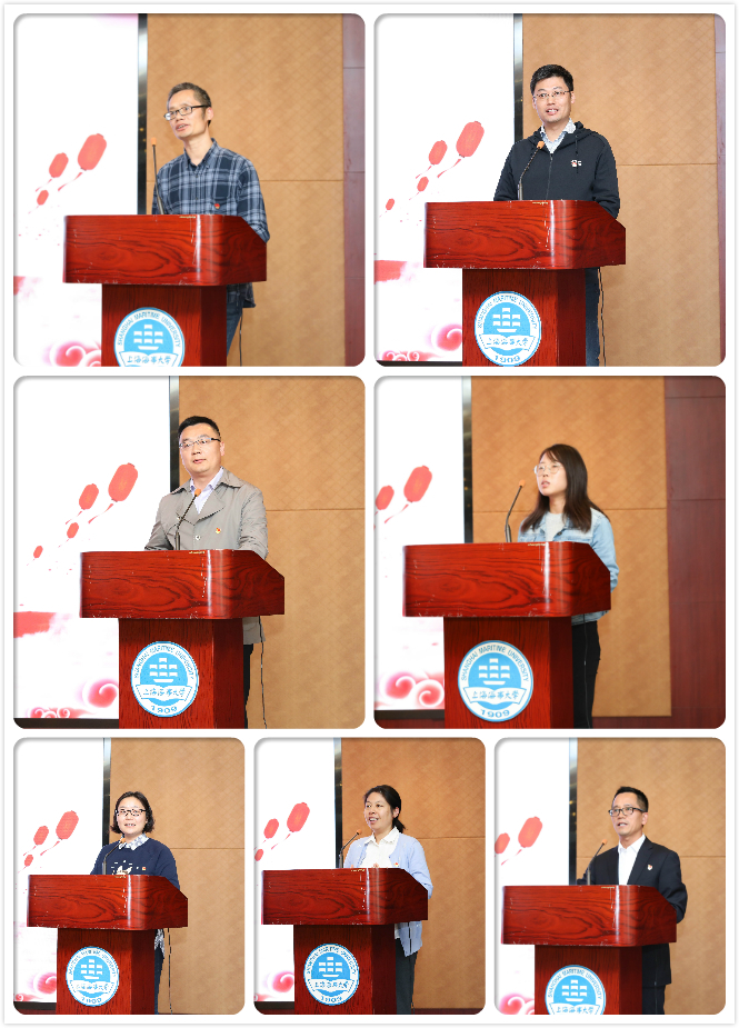 参加读书分享的14名党员由各支部推荐,有机关党总支委员、支部书记、处级干部、专任教师,更多的是普通党员,大家结合《习近平关于“不忘初心、牢记使命”论述摘编》《习近平新时代中国特色社会主义思想学习纲要》等论著的学习,分享了各自的学习内容、学习方法,更多的是学习感悟。发言选题立意高,切口小,挖掘深,理论联系实际,表述方式新颖。党办组织纪委支部陈敦耀老师从党史、国史宏观叙事的角度,慷慨陈词,恢弘大气;研究生院支部董青青老师以“人民”之名,追求对美好生活的向往,结合自身社会实践,娓娓道来;外事支部代表、国际教育学院刘娅琼老师全程脱稿,把学习交流变成一堂课程思政,展现了功力;保卫处支部高健老师不但学习深入,而且善于总结,形成“五个一”学习法;校办党支部秦立卿老师代表校庆活动的“尖刀连”,把学习实践和校庆筹办工作结合起来,表达了始终保持奋斗精神和勇于战胜风险挑战的决心等。