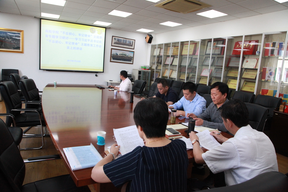 9月25日,商船学院党委在G324会议室组织召开学习习近平总书记在“不忘初心、牢记使命”主题教育工作会议上重要讲话的研讨交流会,曹红奋书记带领班子全体成员认真学习了总书记讲话原文,并强调要原原本本学,认认真真学。肖英杰院长在交流发言中表示,要充分认识主题教育开展的重要意义,准确把握学习的要求和目标,广大党员干部要将学习融入工作实际,把“改”字贯穿始终。同时肖英杰还对讲话中的金句谈了自己的理解和认识。李品友副院长在交流发言中结合学院教学工作,思考工作中的不足,找准问题的根源,表示将培育更多的“金课”作为工作的努力方向。会议还讨论了学院在主题教育问题整改落实工作方案。