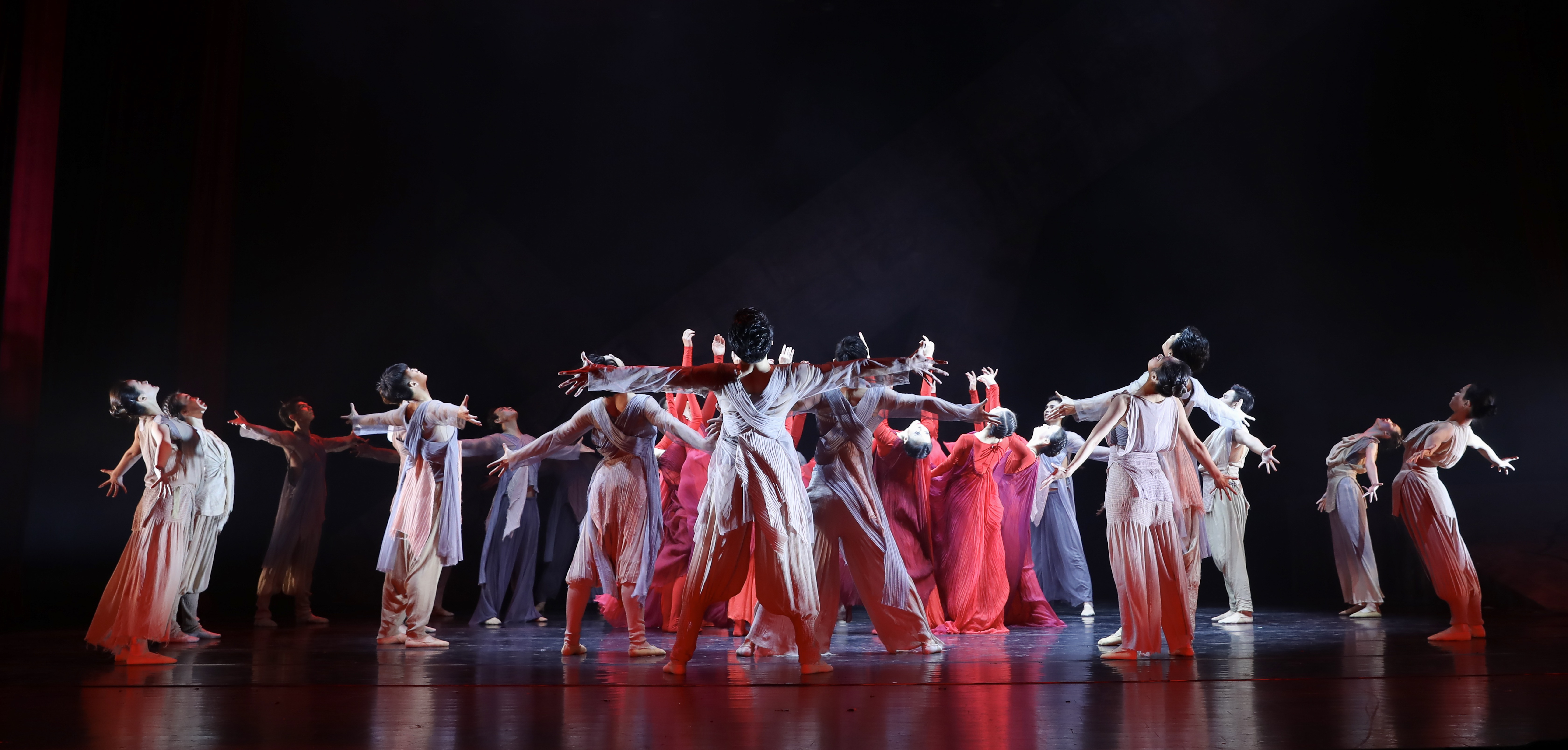 本次大型音乐舞蹈诗《红》由上海戏剧学院于2011年为献礼中国共产党成立90周年而创作,舞蹈色彩对比鲜明,直观地反映出光明与黑暗的博弈,展现出中国共产党走过的艰苦历程,歌颂了党的顽强不屈的宝贵精神。现场演出精彩感人,引发了在座观众们的共鸣,掌声热烈。