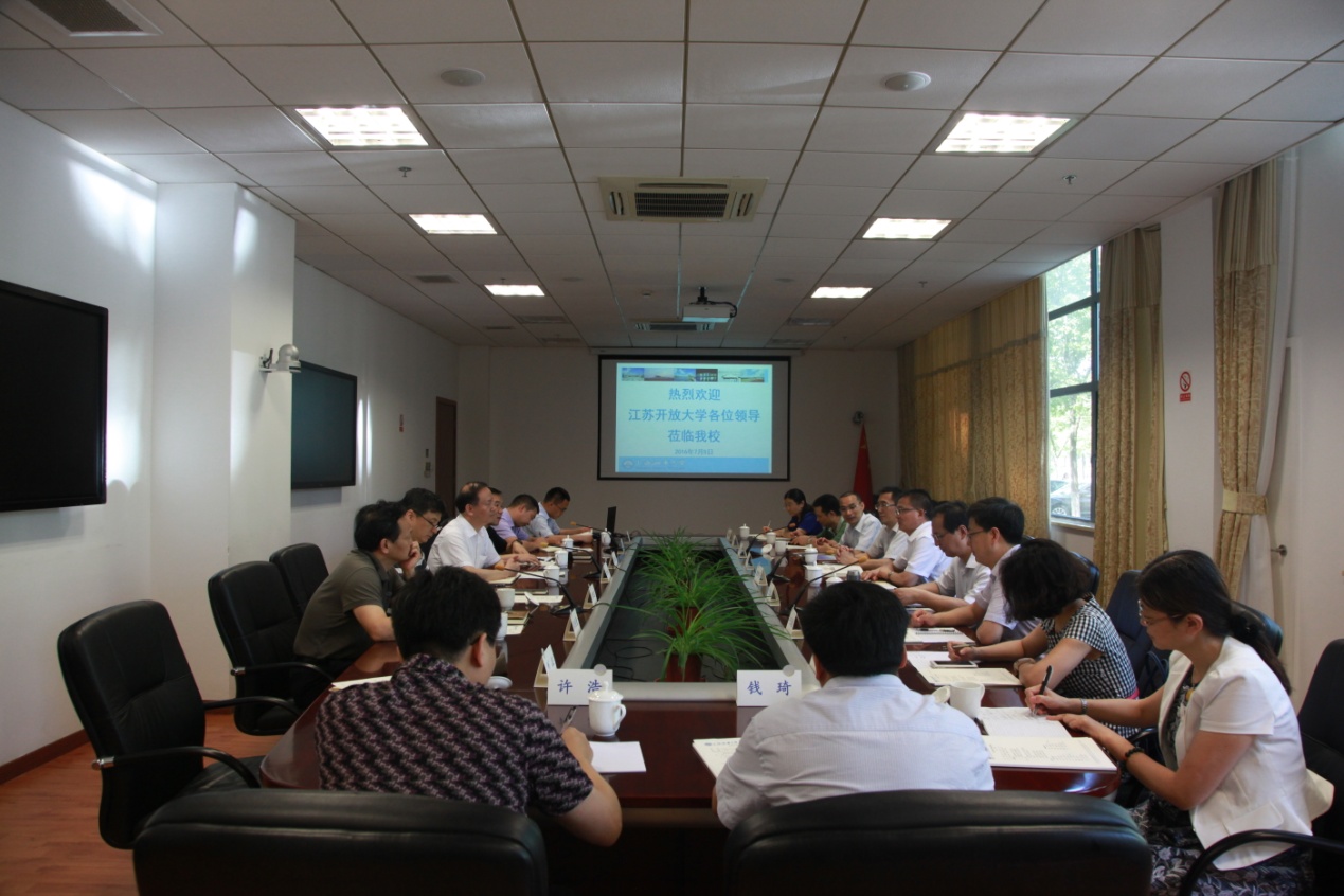 崔新有校长介绍了江苏开放大学的发展历程及发展方向,表示希望通过调研,收获内部管理改革方面的先进经验,推动本校发展。