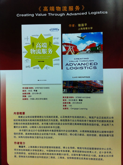 8月30日,第十九届北京国际图书博览会在中国国际展览中心举行,由圣智学习集团及中国人民大学出版社联袂推出的“利丰企业管理丛书(首三部)”《高端物流服务》《服务供应链》及《全球价值链治理》的中、英文版,同步举行新书发布会。