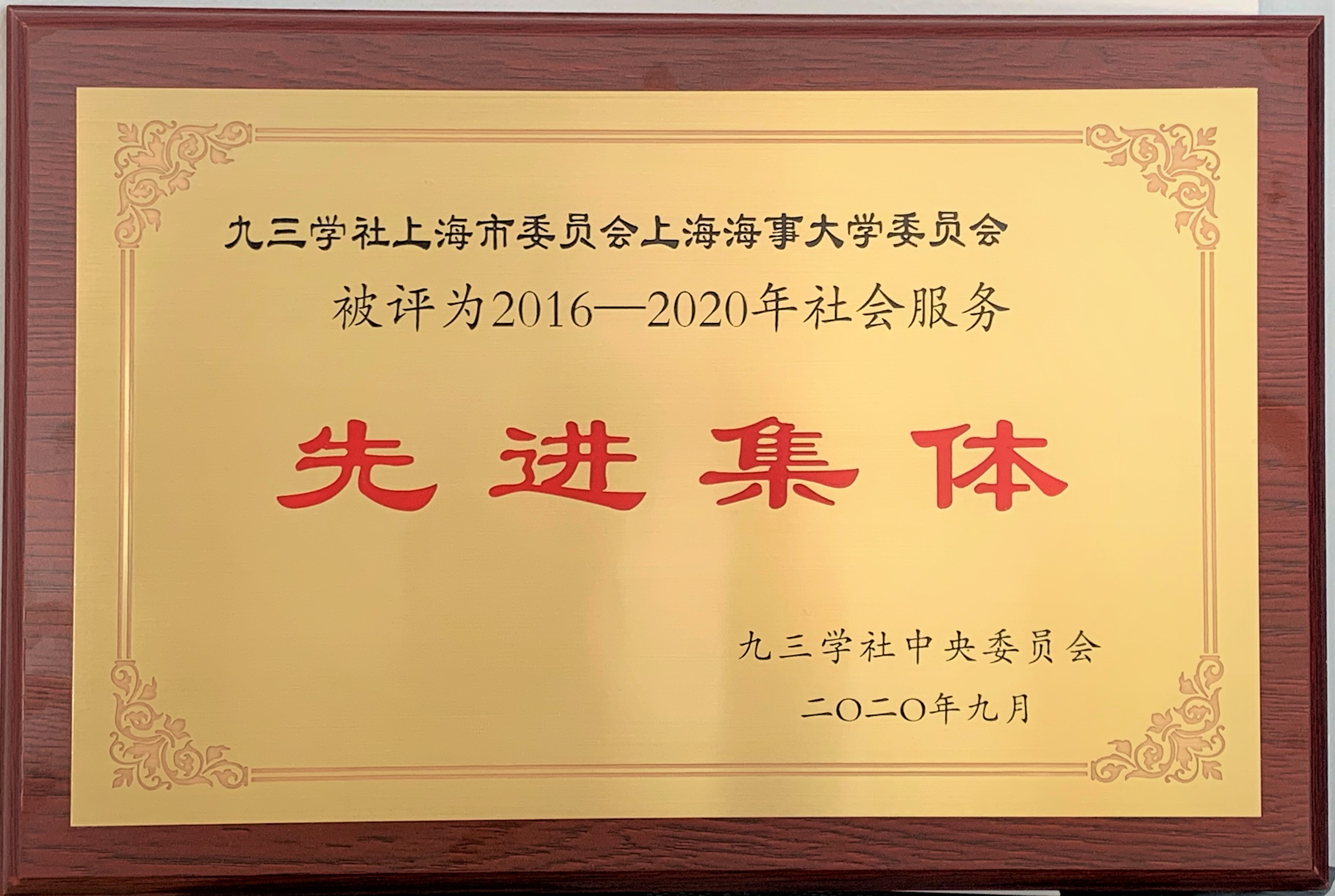 近日,九三学社中央表彰了在社会服务工作领域作风优良、勇于创新、业绩突出的集体和个人,九三学社上海海事大学委员会被评为“2016-2020年社会服务先进集体”。
