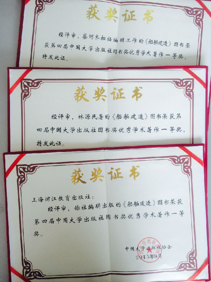 浦江教育出版社出版图书《船舶建造》荣获第四届中国大学出版社图书奖优秀学术著作一等奖