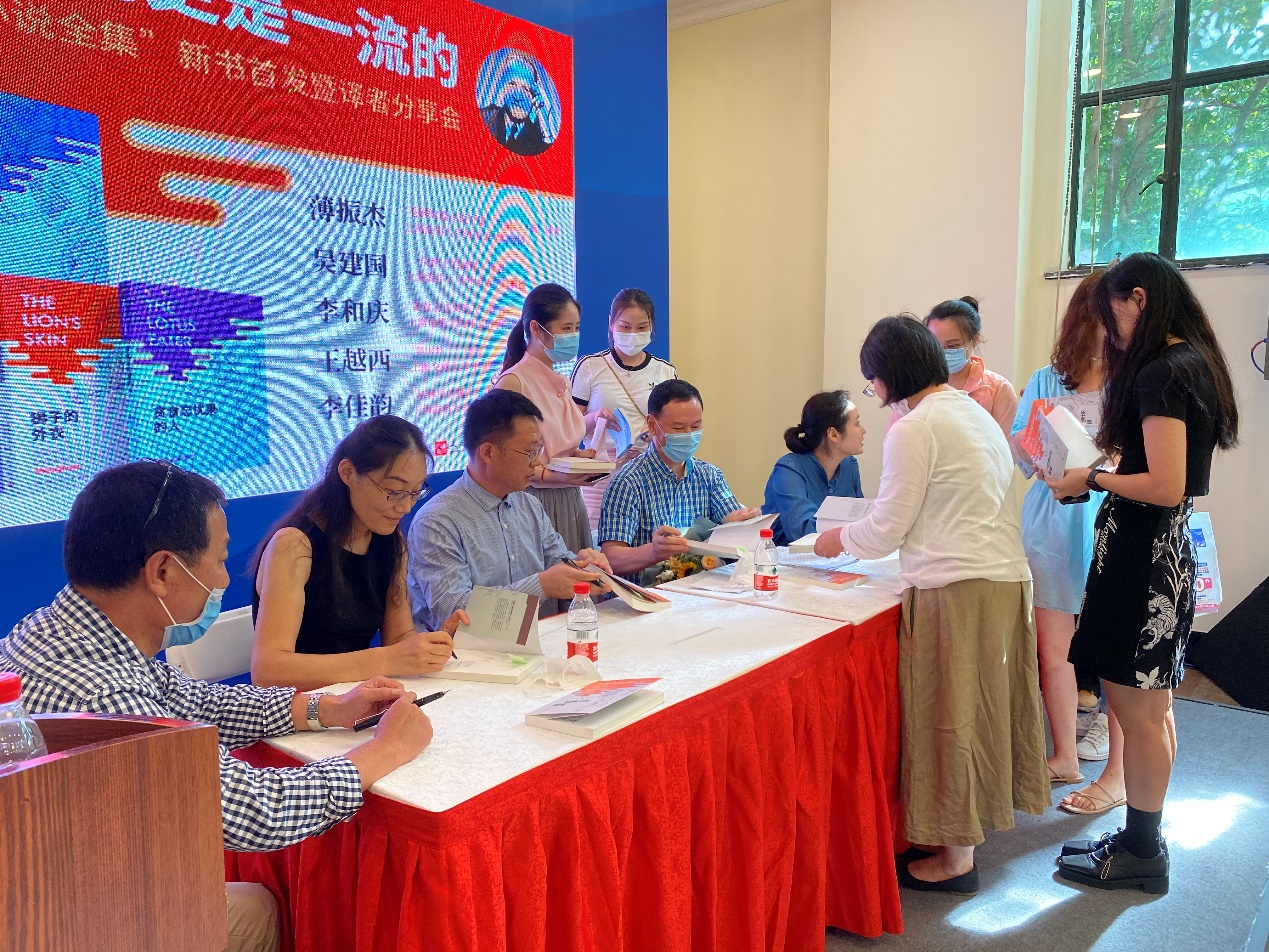 新书发布会由人民文学出版社责任编辑、策划人邱小群女士主持。《亨利•詹姆斯小说系列》主译团队上海海事大学吴建国教授、薄振杰教授,上海电机学院李和庆教授,上海交通大学王越西副教授等,《毛姆短篇小说全集》主译团队上海海事大学薄振杰教授、吴建国教授、译学新秀李佳韵老师、上海电机学院李和庆教授、上海交通大学王越西副教授等专家与广大书友共聚一堂,畅谈文学和翻译,分享翻译中的趣事、思考和艰辛。发布会后还举行了新书的签售仪式。