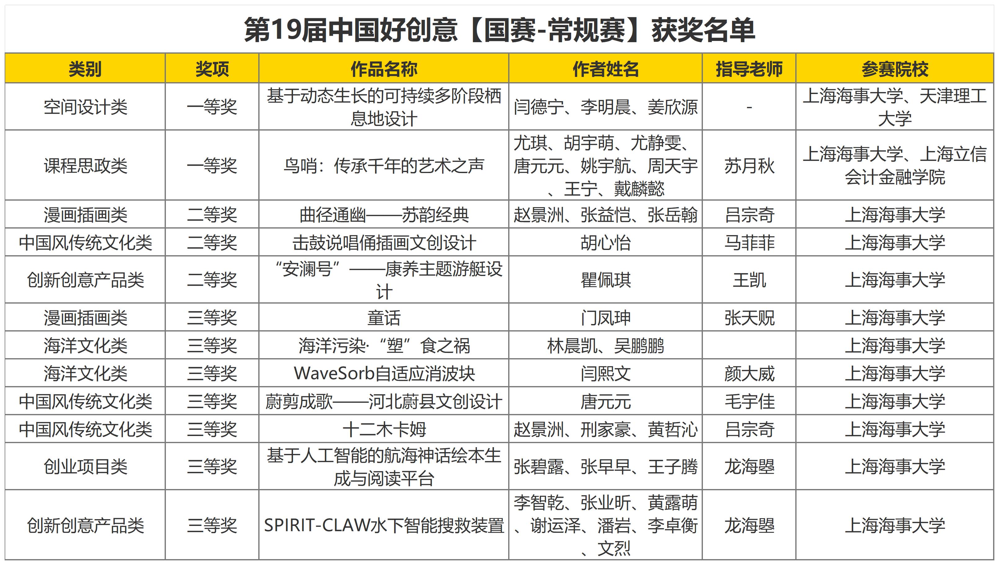 上海海事大学学生在第19届中国好创意大赛中获奖