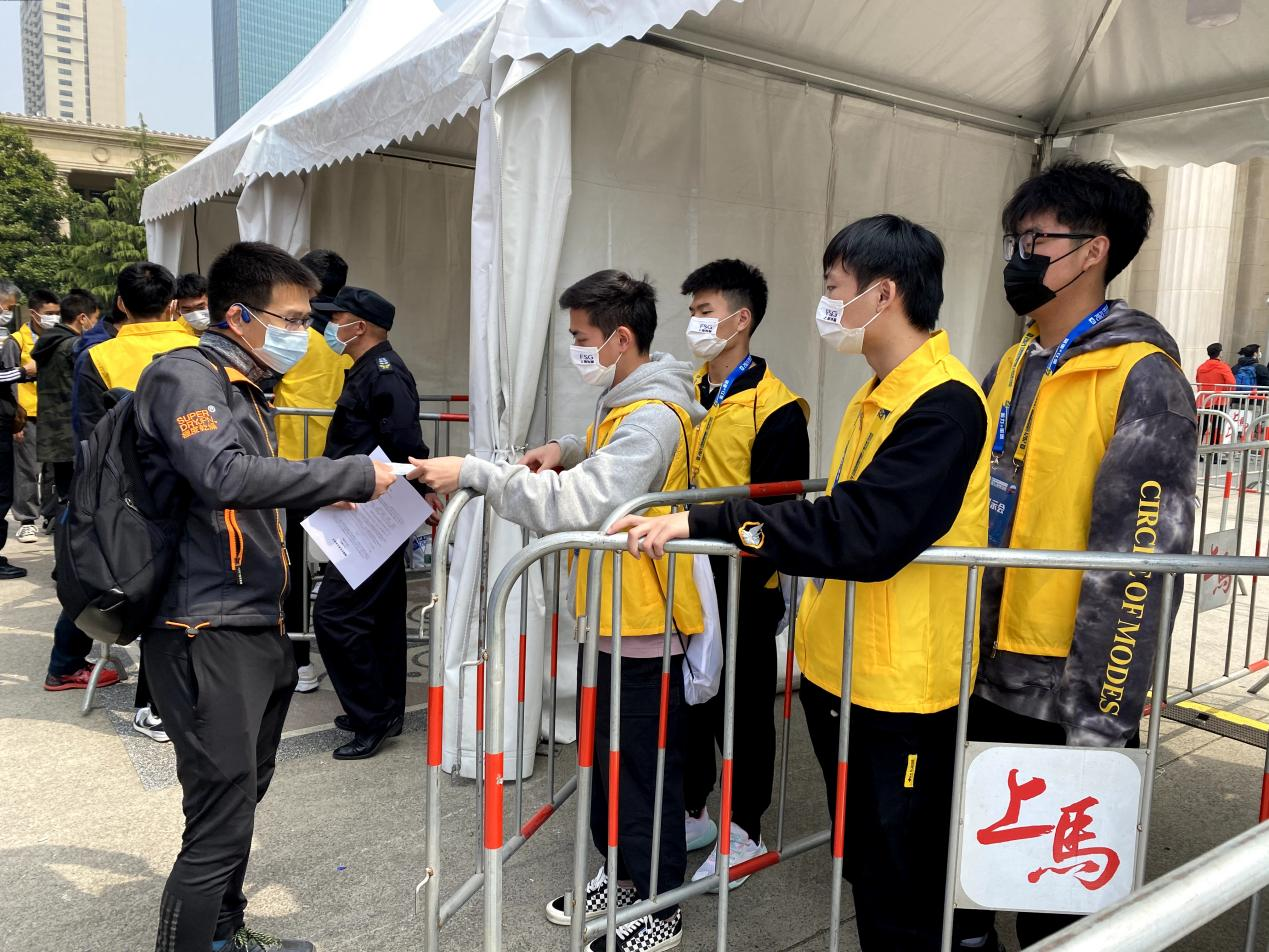 上海国际半程马拉松以“蓄力重燃”为口号,是2021年上海市第一场全民参与的马拉松赛事。应上海国际半程马拉松主办方要求,学校经过严格的线下面试,最终筛选出352名志愿者。4月16日、17日,学校122名志愿者分别在外场指引、身份匹配、检录、指引和内场咨询台、号码牌领取、参赛物资发放、后勤等赛前岗位工作,解答参赛者问题,维持秩序。4月18日,学校230名志愿者于凌晨两点出发,提前到场开展存衣工作,在起点为选手提供包袋寄存服务,按要求摆放、归纳、整理包袋,并在选手到达终点后为他们发放存衣包。