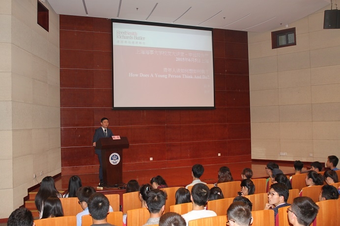 6月5日下午,十大杰出新香港青年、上海海事大学2004级法学专业校友刘洋应邀担任第五期校友大讲堂主讲嘉宾,作了题为“青年学生该如何想如何做”的演讲。