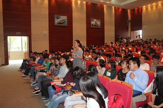 在互动环节中,刘洋幽默风趣地回答了同学们提出的关于出国深造、异地求职、语言能力培养等方面的问题。