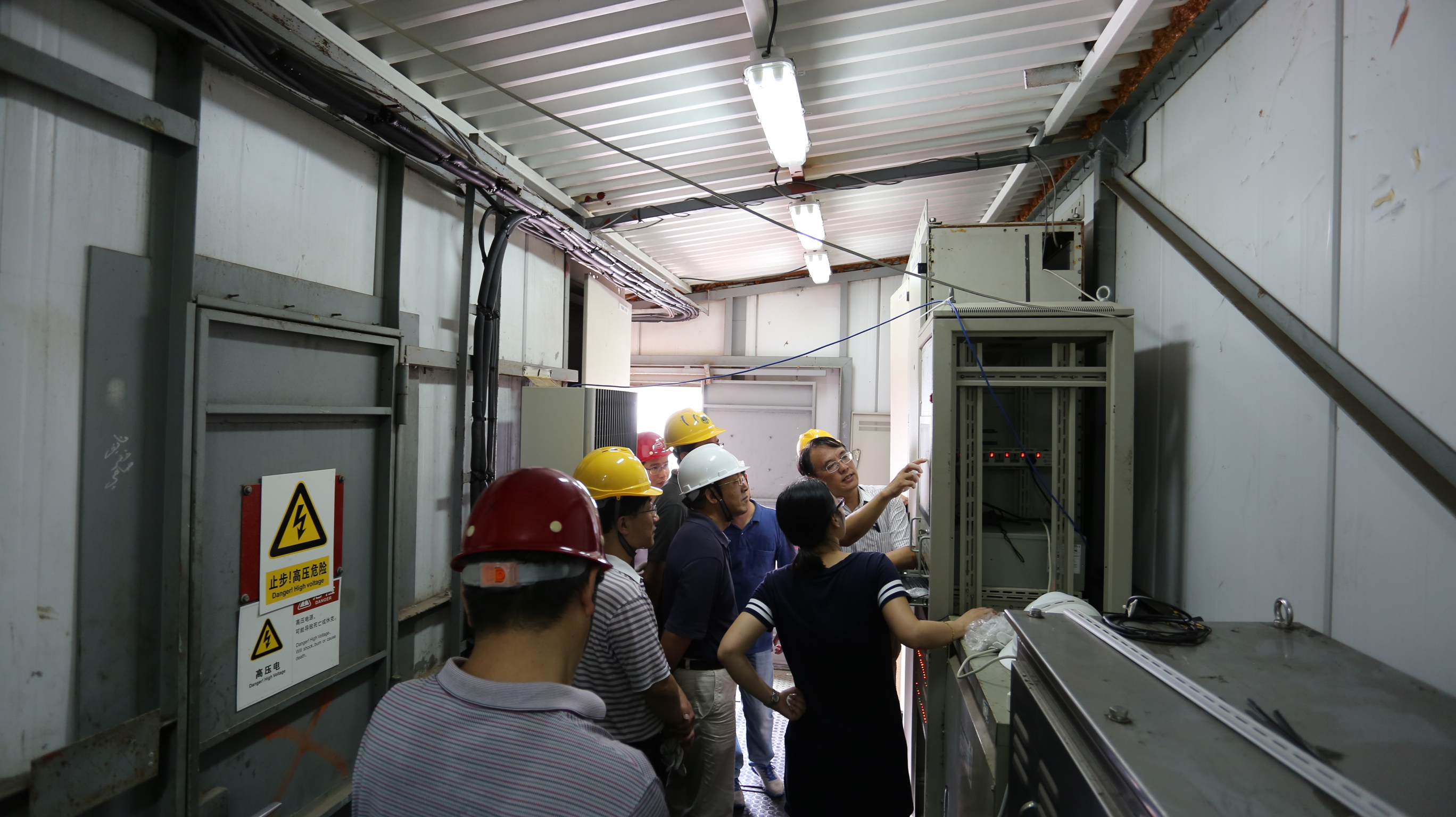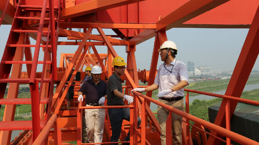 验收组一行来到我校集装箱起重机现场检查项目示范应用情况,课题组成员向专家介绍了该项目相关研究情况,并与专家对相关问题进行了交流。