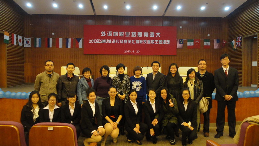 4月20日下午,适逢上海海事大学第五届校园开放日,外国语学院在科研楼报告厅举办了“2013年SMU外语专场群英汇暨校友返校主题活动”。南美轮船(中国)有限公司上海区总经理赵彦萍女士、米其林(中国)投资有限公司市场部经理高咏女士和上海世博发展(集团)有限公司创意策划部总经理毛竹晨女士作为我校英语专业1994届校友,走进母校新校园,与同学们交流职场经验,畅谈她们心中的“外语职业梦想”。来自外语专业和校内其他各专业的200多名本科生和研究生参加活动。外院2013届毕业生李亚欣担任现场主持。