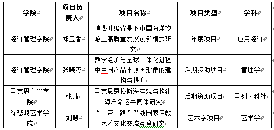 日前,全国哲学社会科学工作办公室公布2019年度部分国家社科基金项目立项结果,上海海事大学4项课题获得资助。其中,1项年度项目,1项艺术学项目,2项后期资助项目。